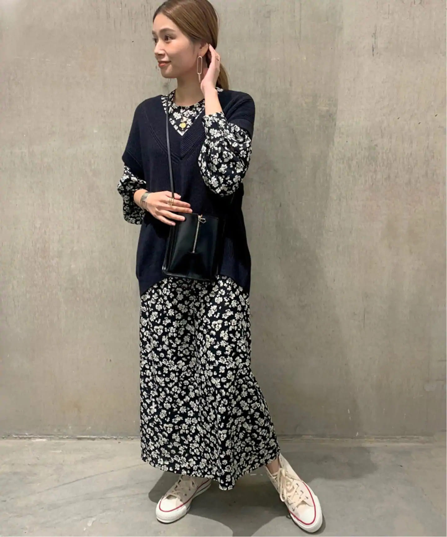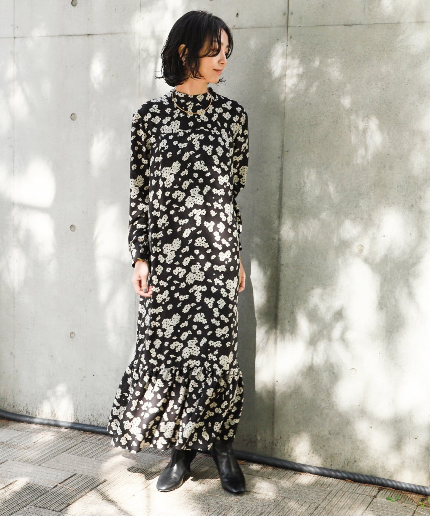 ブラックフラワーワンピース大人が着られる花柄ワンピースは