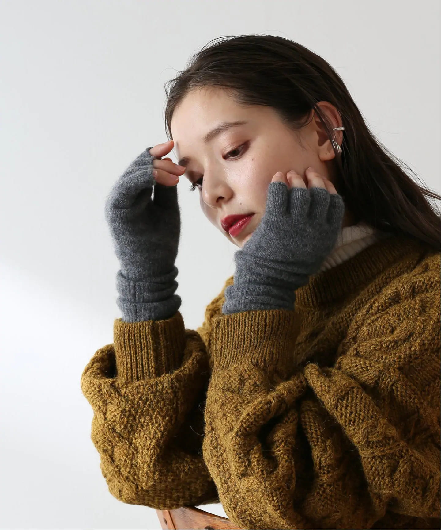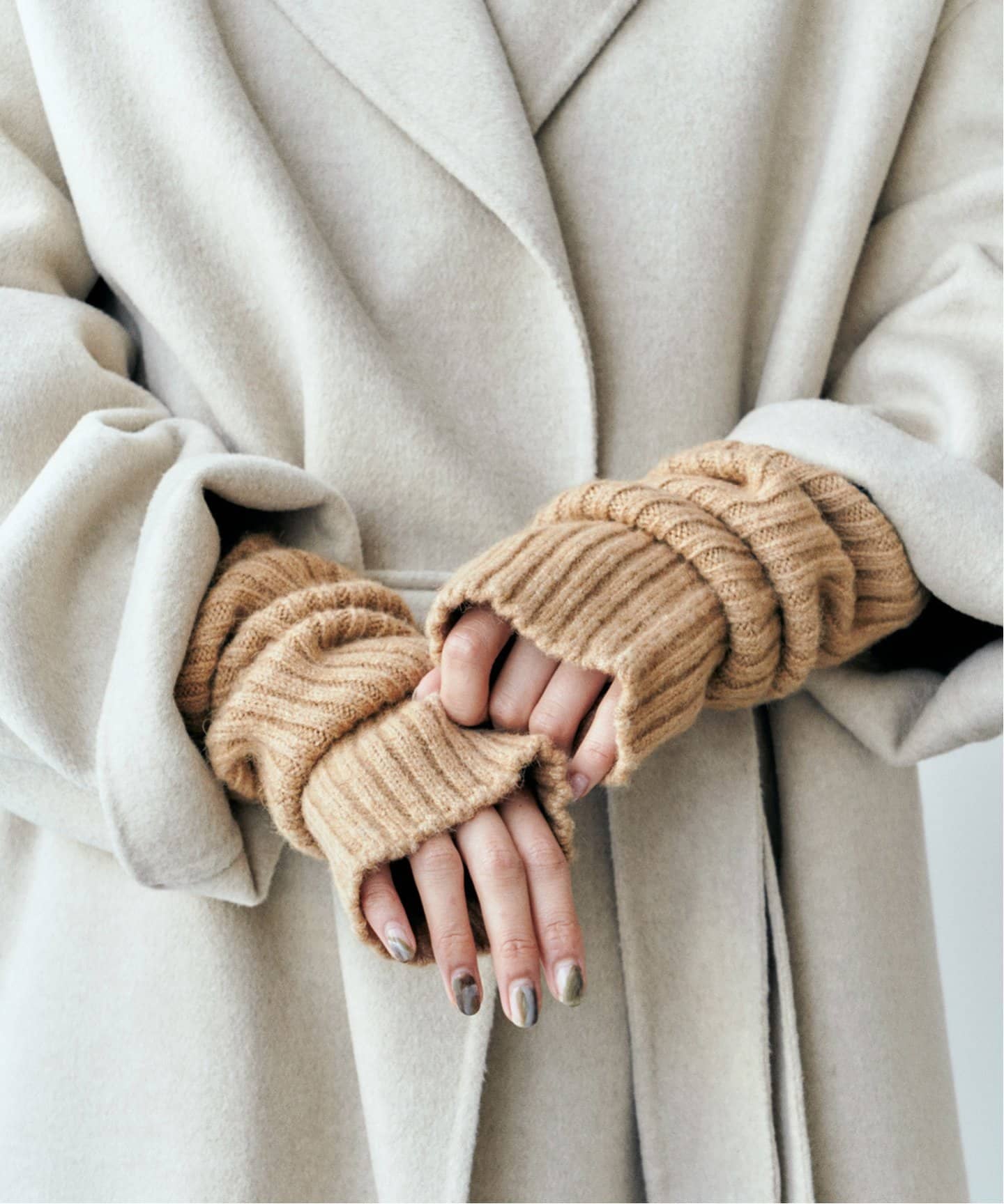 手元にアクセントを添えて今年らしいグローブといえばアームウォーマー。