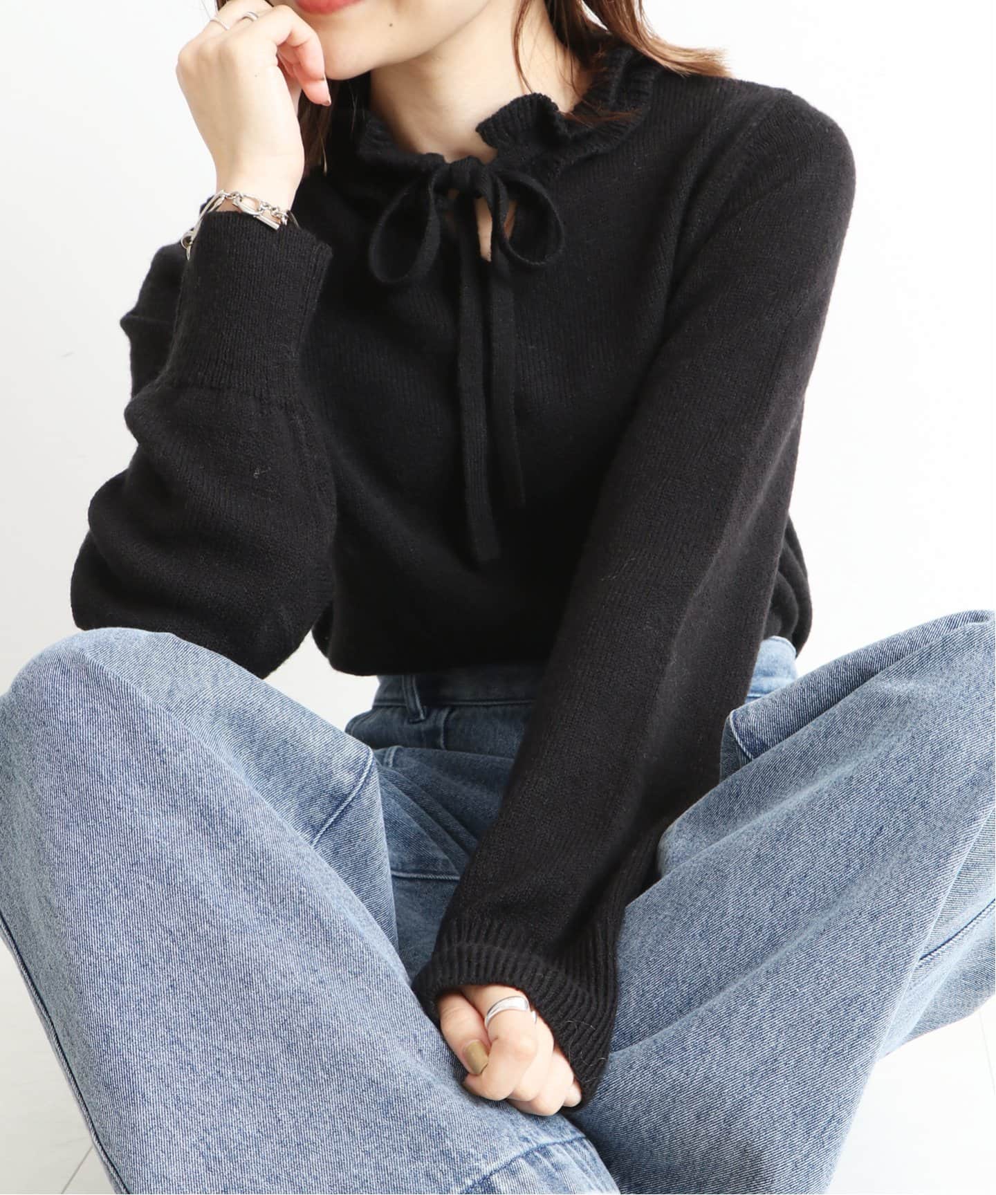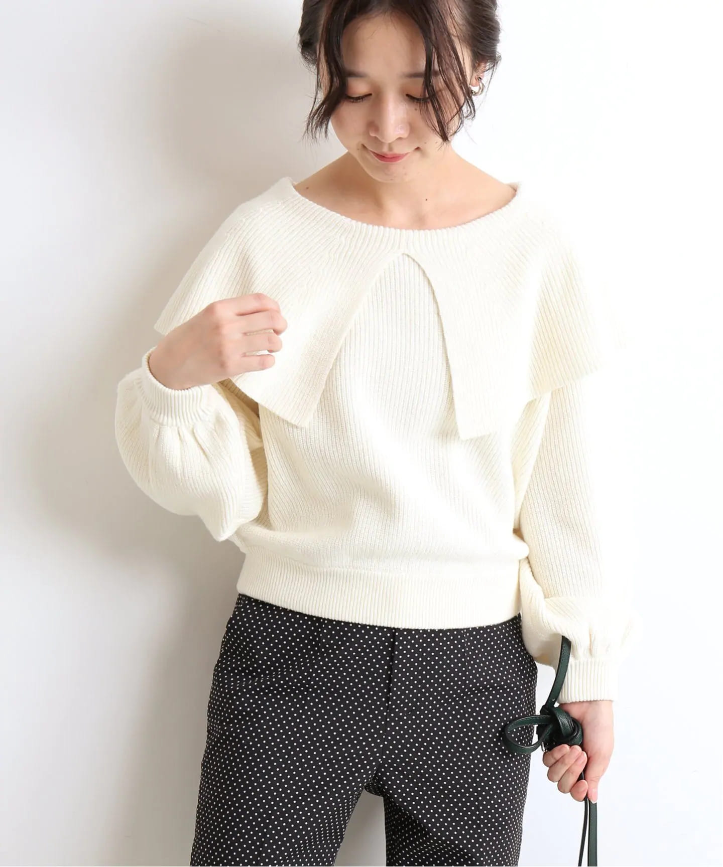シンプルニットに飽きたら、襟元で遊びを効かせて。
