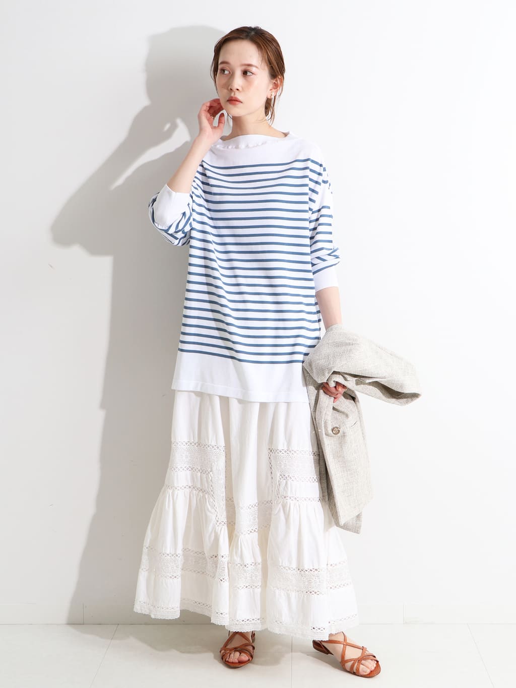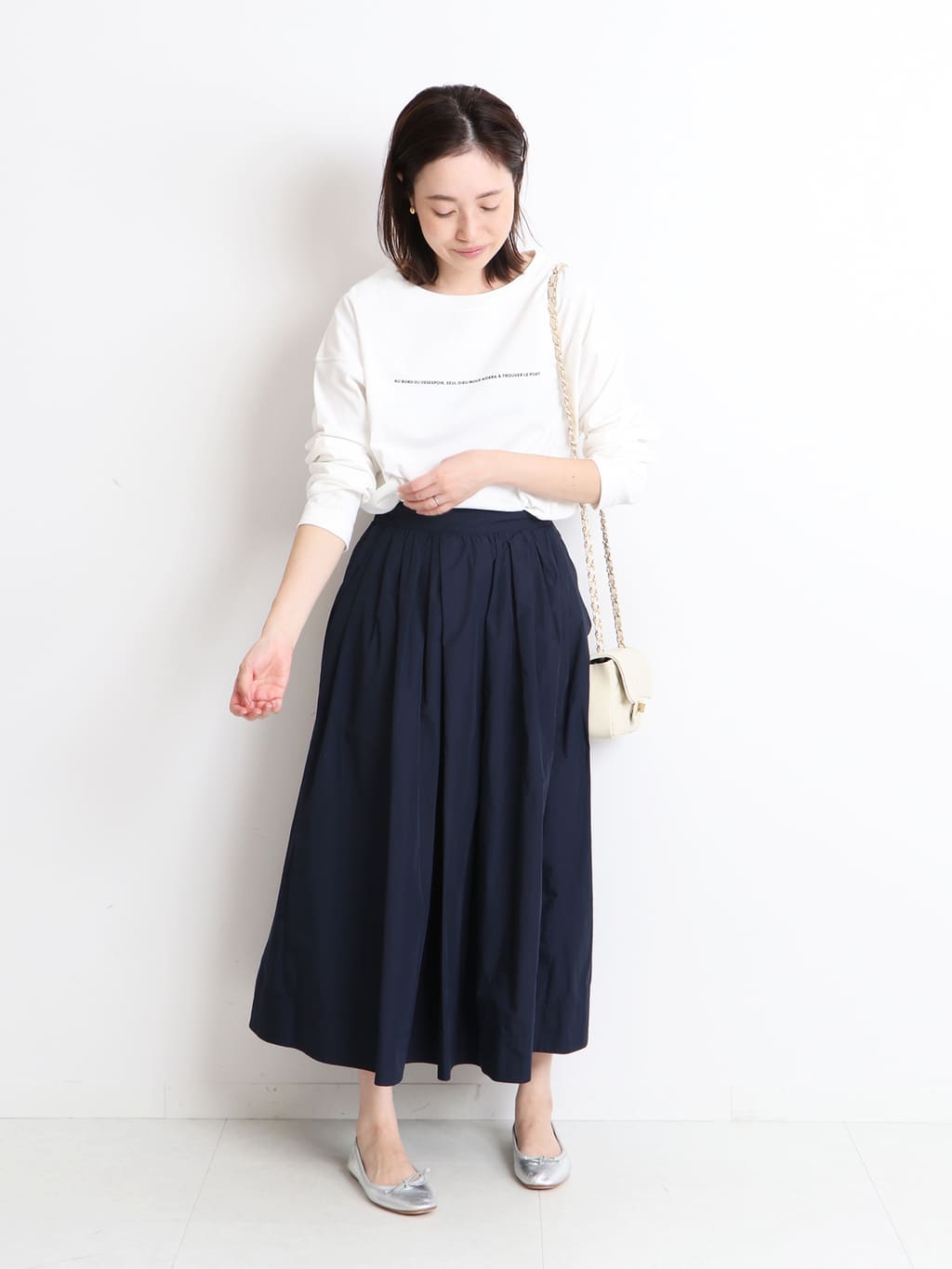 洗練のフェミニンへと導く大人スカート軽やかなスタイルだからトライしやすく