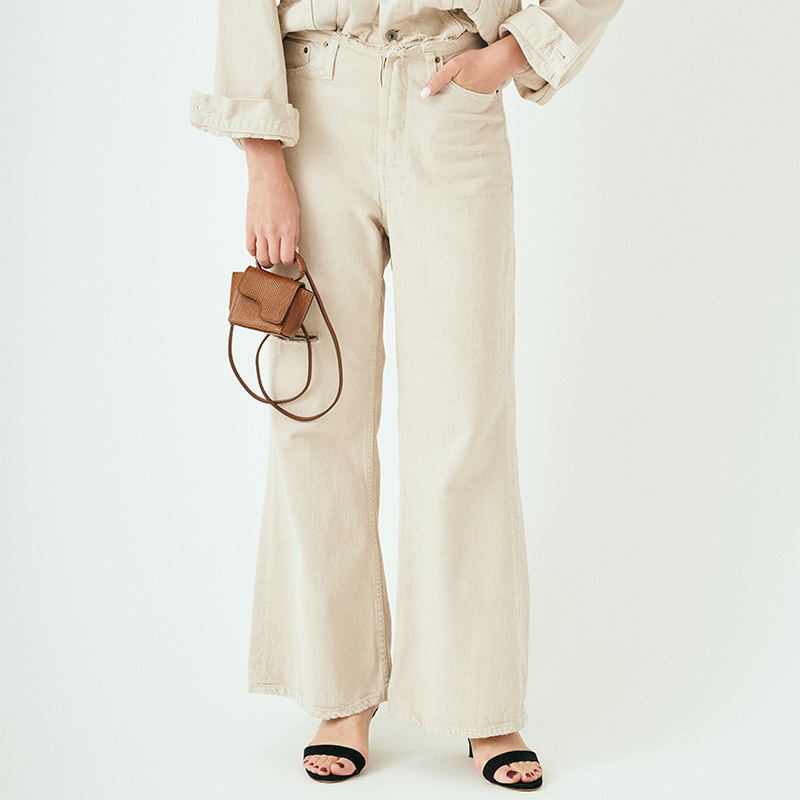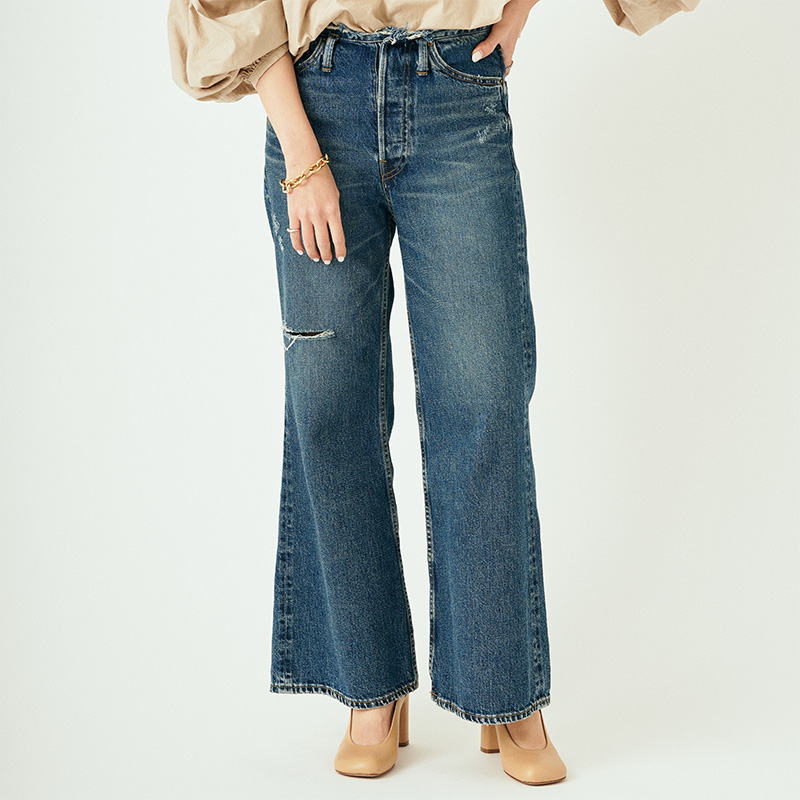 - DAMAGE DENIM永遠のベーシックアイテムであるダメージデニムをオリジナルでご用意。ウエストのカットオフや、少し抜け感のあるセミフレアなシルエットなどこだわりの詰まったデニム。カジュアルから綺麗めまでさまざまなスタイリングを楽しみたい。