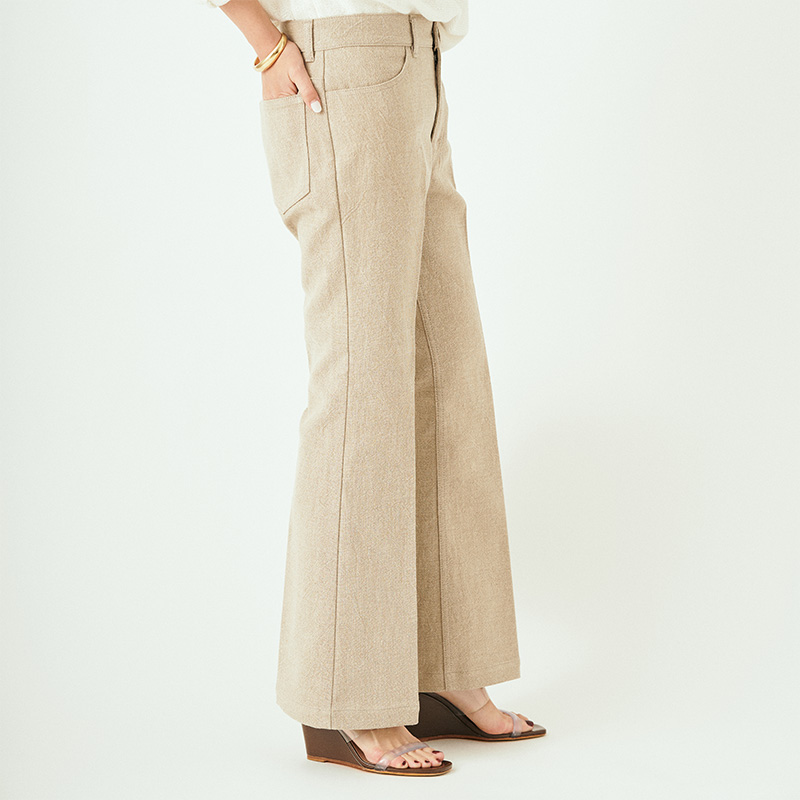 - LINEN FLARE PANTSデニムのディテールをそのままリネンパンツに。腰ばきでも女っぽく履けるシルエットが拘り。馴染んでいくことを楽しみながら長く、大切に愛用したい。