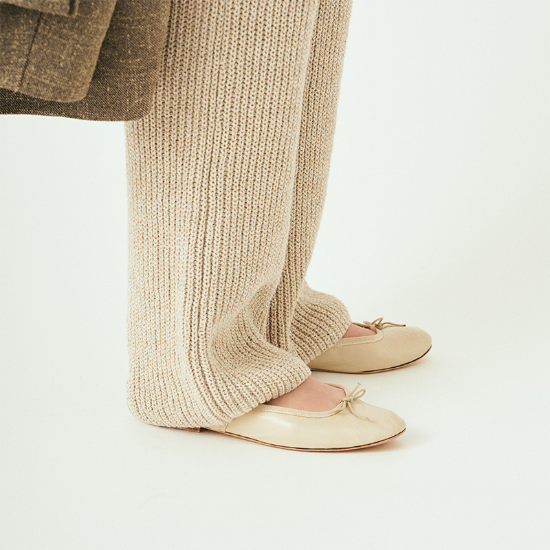- PORSELLIここ数年で一気に定番アイテムになったポルセリのバレエシューズ。デニムに合わせたフレンチなスタイリングはもちろん、今年はトーン合わせでクリーンに履きたい。