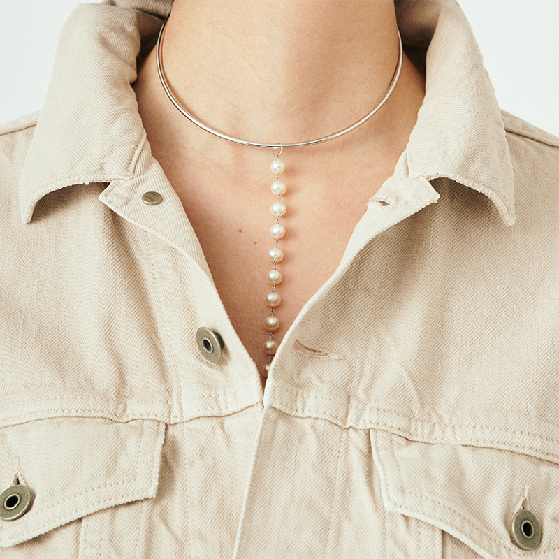 - Lilas存在感抜群でスタイリングの主役になるチョーカーは淡水パールを存分に使用。パール部分は取り外しでき、2度楽しめるのも嬉しいポイント。