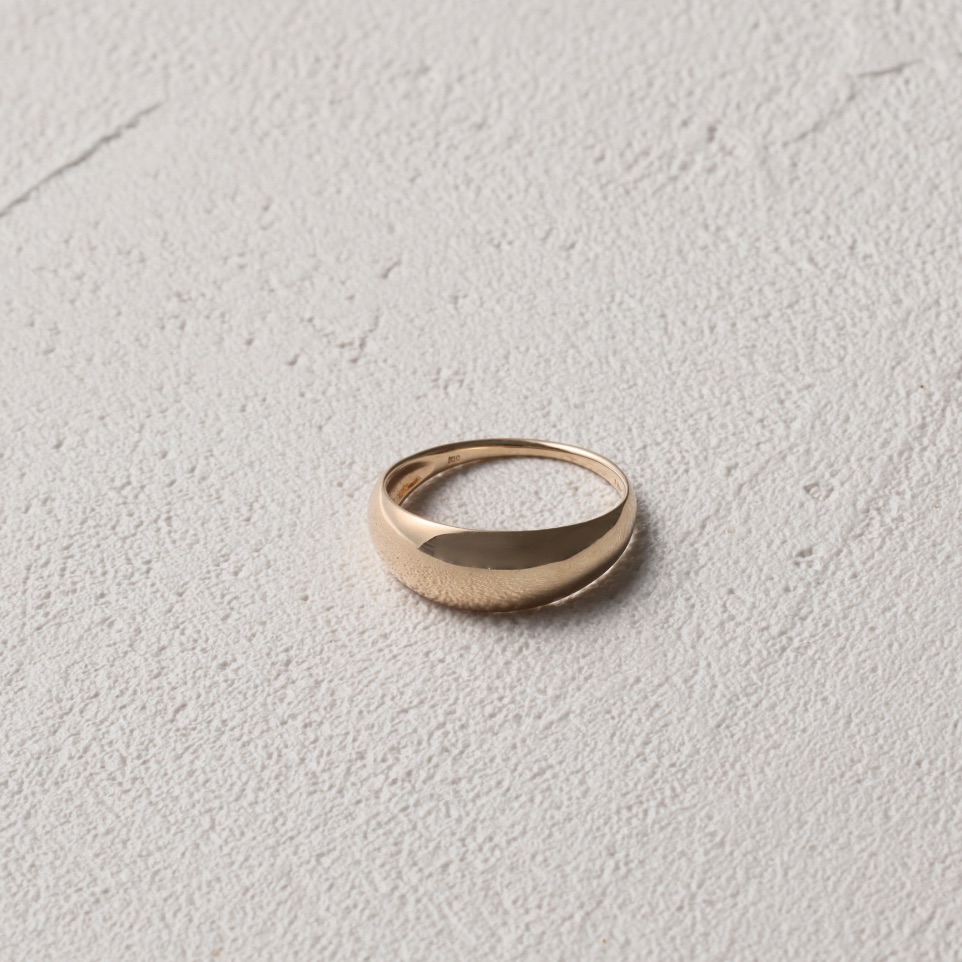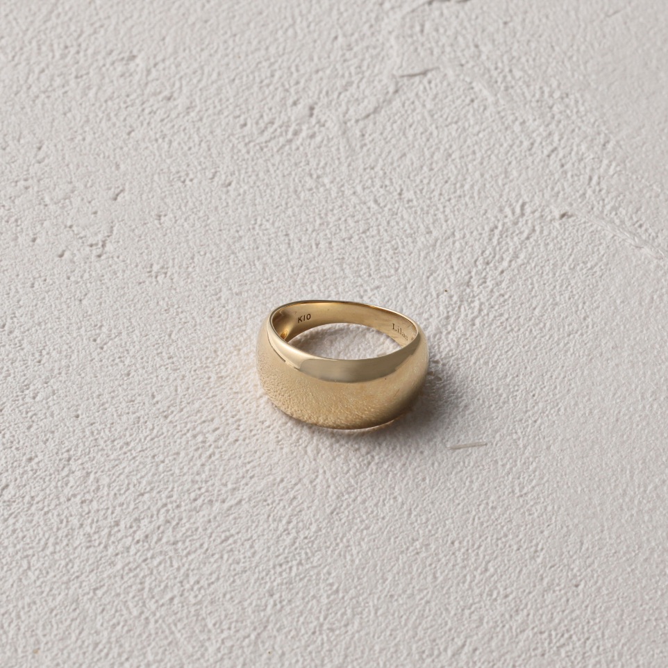 - 10mm幅の甲丸リングはボリュームのあるシルエットがモダンな雰囲気。指の内側に向かって緩やかに細くし、指を曲げた時に負担がかかりにくいように配慮。