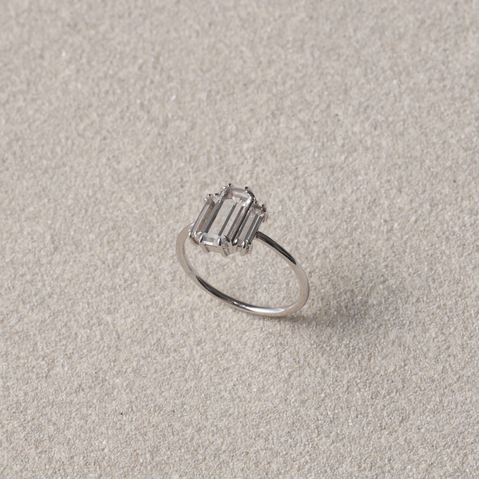 - オリジナルのスクエアカットを施したクオーツをあしらったリング。クラシックな雰囲気を醸し出すデザインが魅力。
