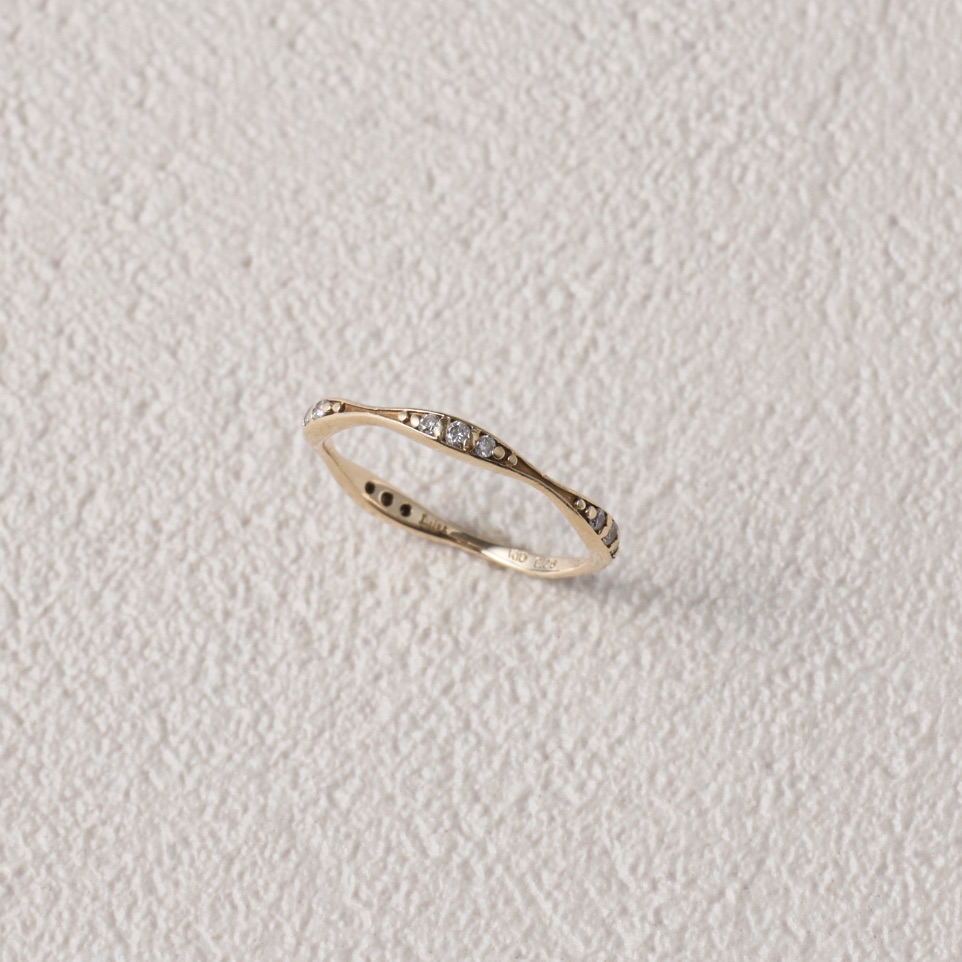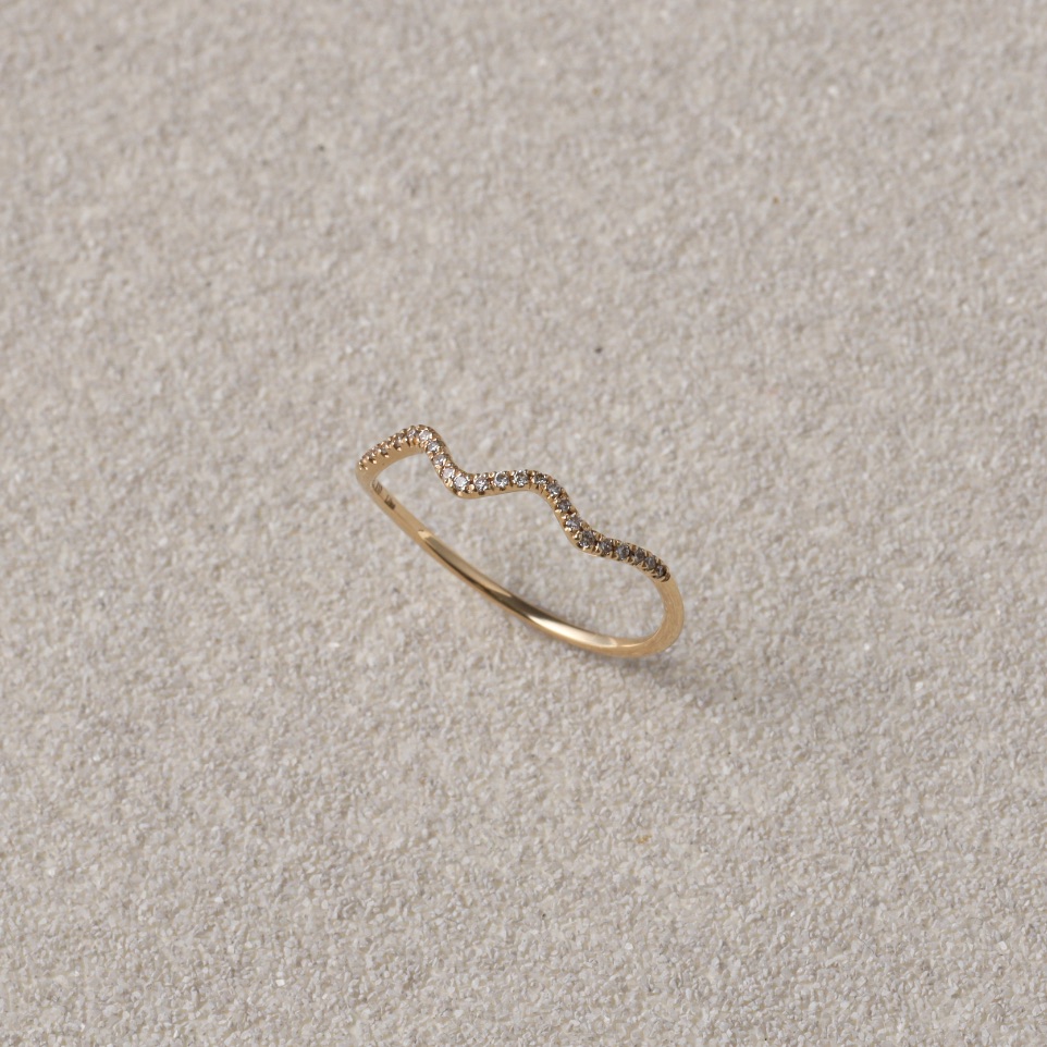 - 浜辺の穏やかな波をイメージしたリング。ゆるやかな曲線にあしらったダイヤモンドが優しげに輝きます。