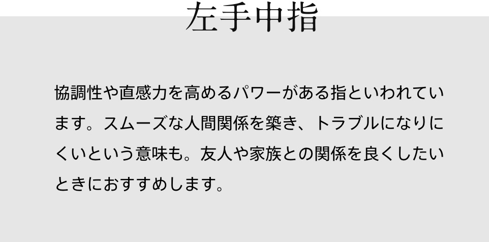 リングは実は、つける指によって引き寄せる運気やメッセージはさまざま。