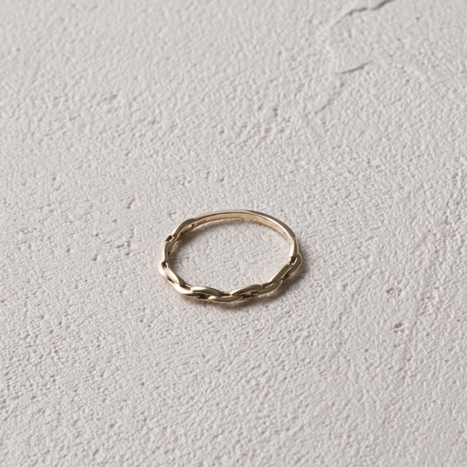 - 華奢なチェーンモチーフが洗練されたムードに導いてくれるリング。スタッキングしても単品使いでも活躍しそう。
