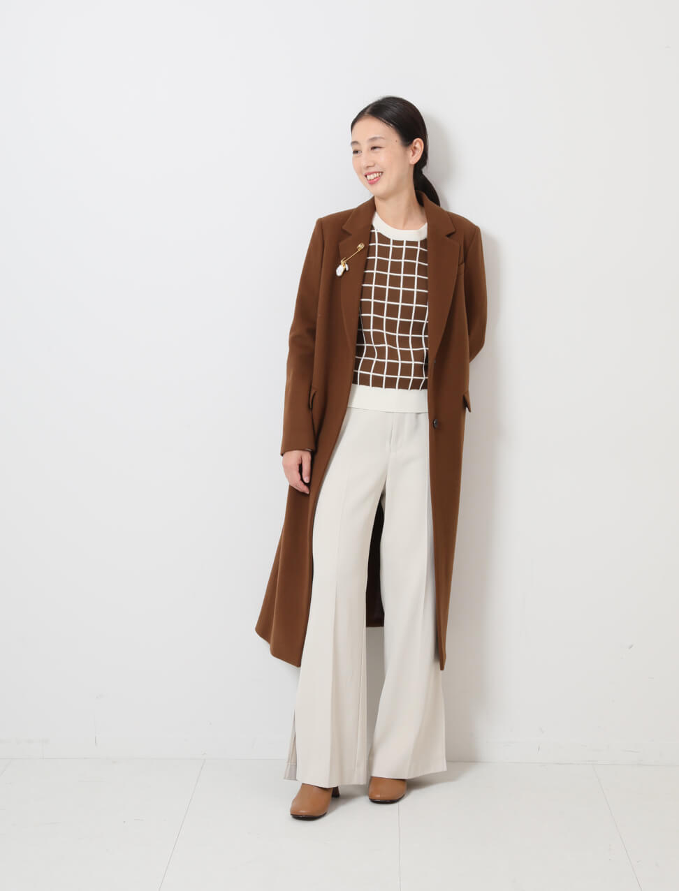 - 素材に上質なウールを使用した、女性らしい品のあるAラインのチェスターコート。上質素材だからこそ出せるこっくりとした畝のあるキャメル色が、ぐっとロマンティックな秋の気分を高めてくれそう。 シルエットが美しいコートのインナーは、コンパクトニットと白パンツですっきりと、かっこよくまとめるのが◎。仕上げにショートブーツでモードをひとさじ。