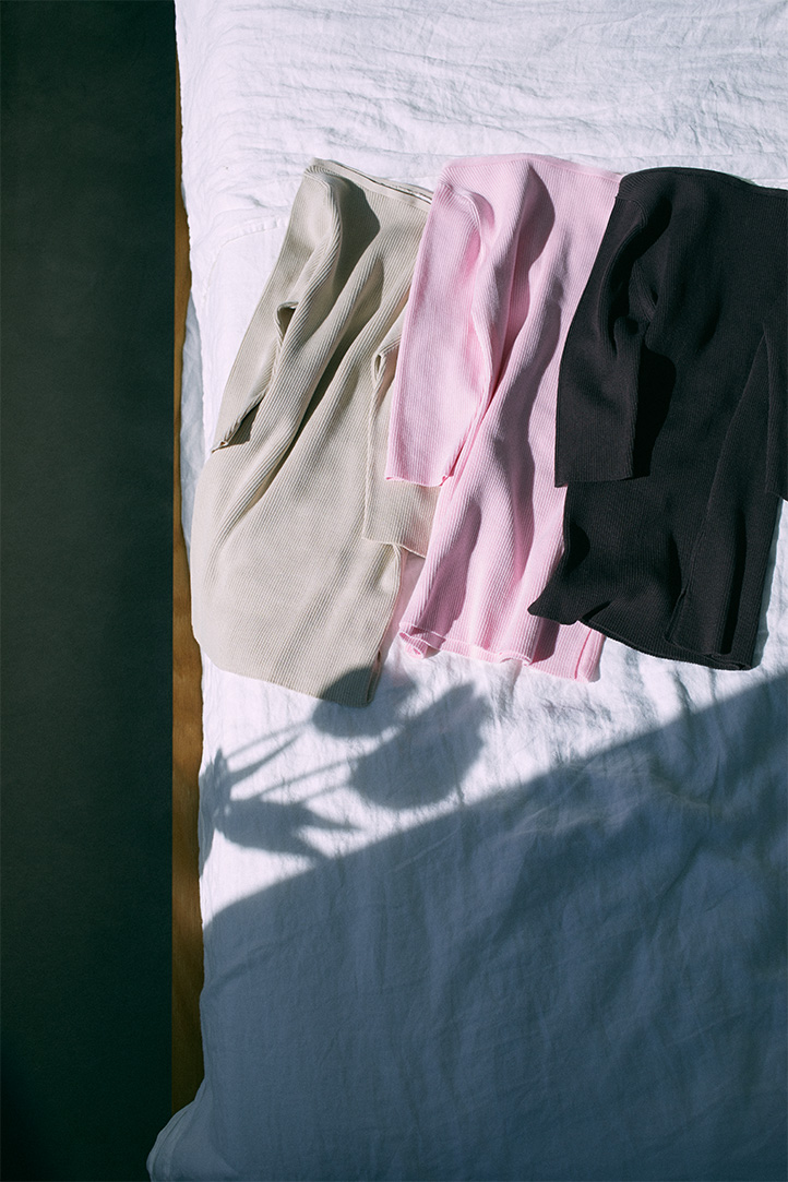 背中や二の腕など大人が気になる上半身の肉感を拾わない絶妙なリブと、計算された美シルエットで細見えに導くニットの名品。鎖骨がさりげなくのぞくボートネックが品のある女らしさを演出。今すぐならジャケットや薄軽コートのインナーに、また初夏には一枚でちょうどいい五分袖タイプ。ベーシックなブラウンとベージュ、肌をブライトアップしてくれる可愛げピンクと3色買いしたい。