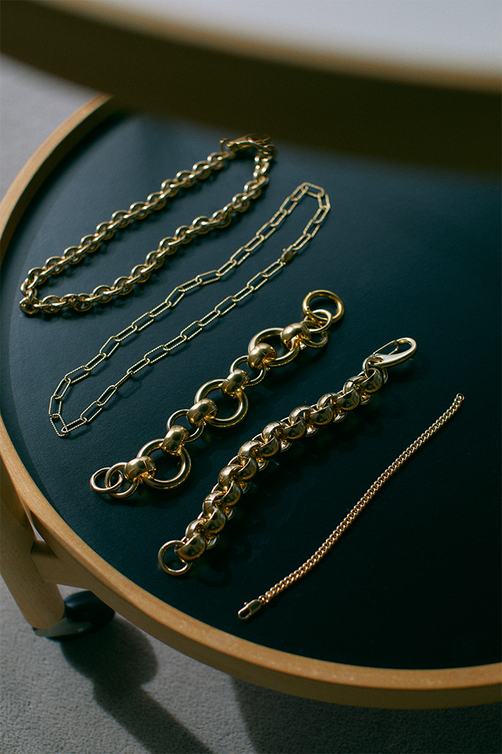 シンプルな着こなしが主流の今こそ、しゃれ見えに効果絶大な存在感のあるゴールドジュエリーが重宝。Tシャツ&デニムといったベーシックなカジュアルスタイルにプラスすることで、デイリーカジュアルもぐっとモードに格上げ。ヴィンテージパーツとモダンパーツを組み合わせ再構築したコレクションはまさに今の気分を体現。