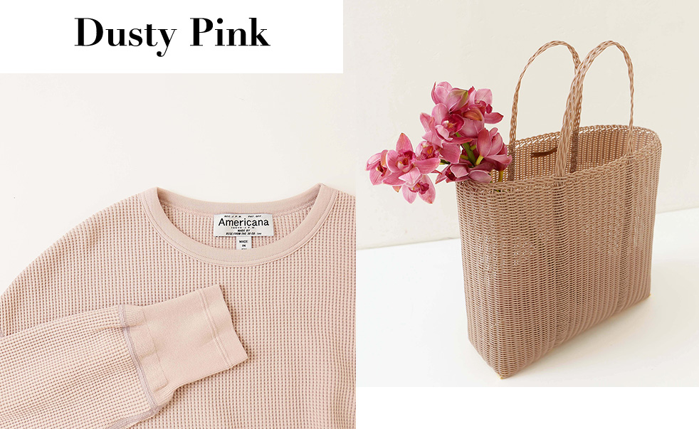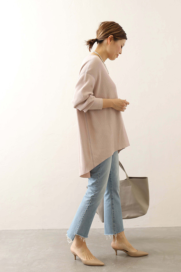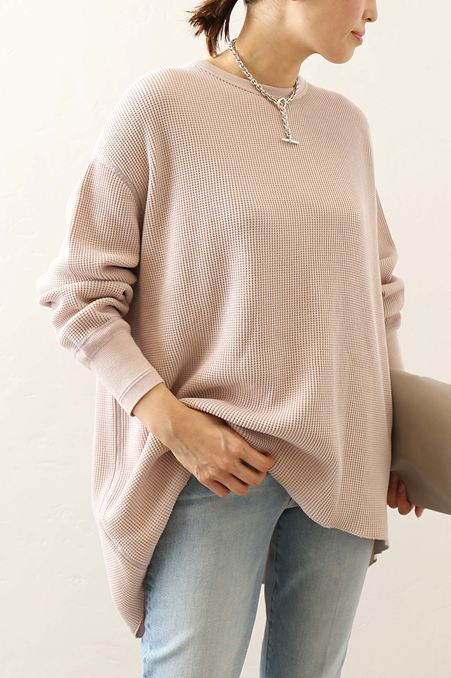 定番のサーマルシリーズから、ほんのり淡く優しいカラーが登場。カジュアルな中にもフェミニンさを感じられるスタイルに。
