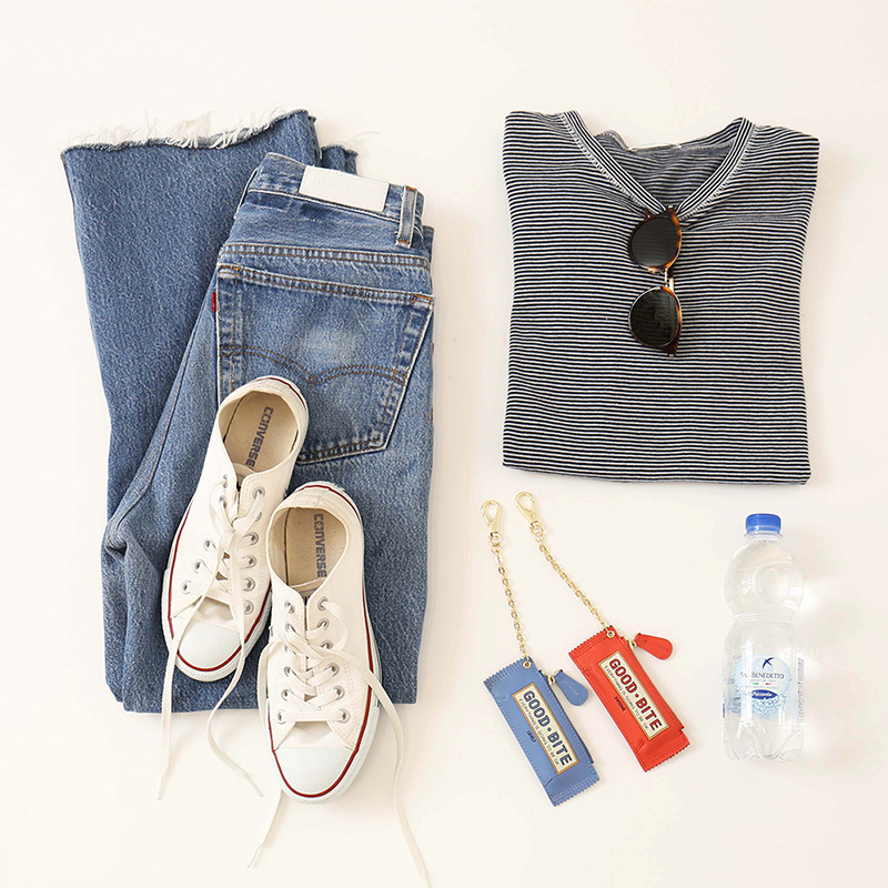 遊び心のあるヘルシーバーチャームはCÉLERIのバッグと相性抜群。手持ちのキーホルダーとカスタムして個性を演出。