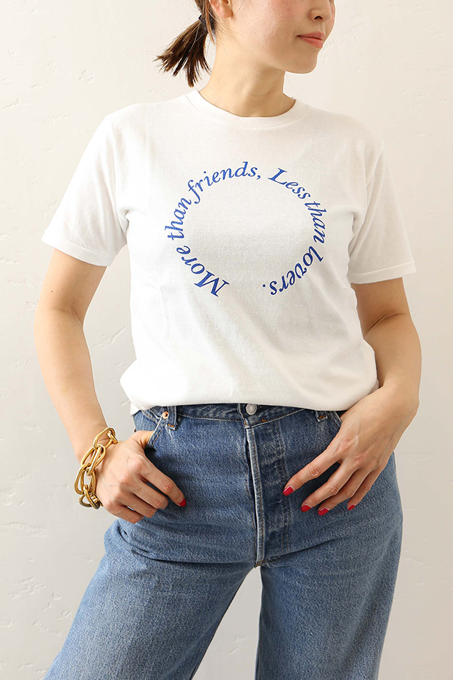 "MORE THAN FRIENDS,LESSTHAN LOVERS"。心をくすぐるチャーミングなメッセージTは、気になるあの人と会う時に。