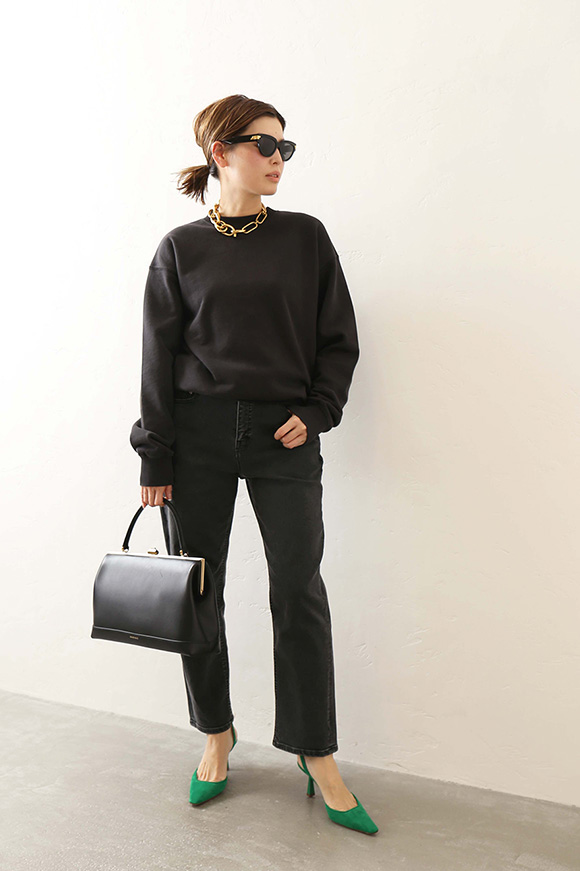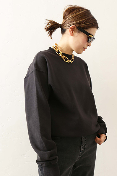 着こなし方で表情が変わる優秀スエット。アクセサリーが映えるよう計算された襟周りと、程良いサイズ感のバランスがちょうどいい一枚。