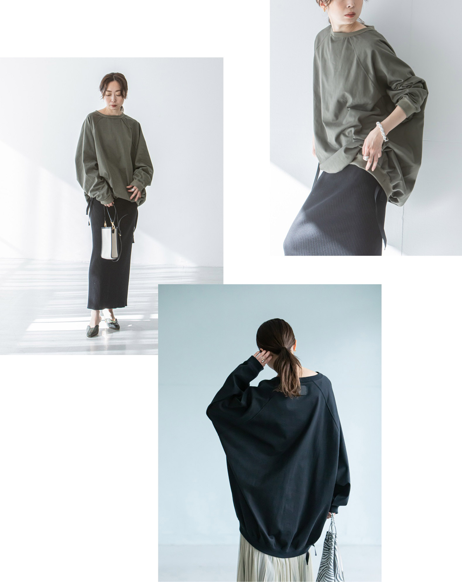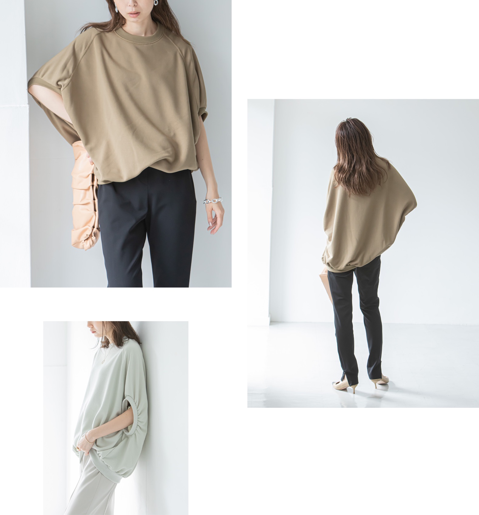 - ワイドなボディを裾のリブでまとめた、ギャザーたっぷりの独特なフォルムのスウェット。