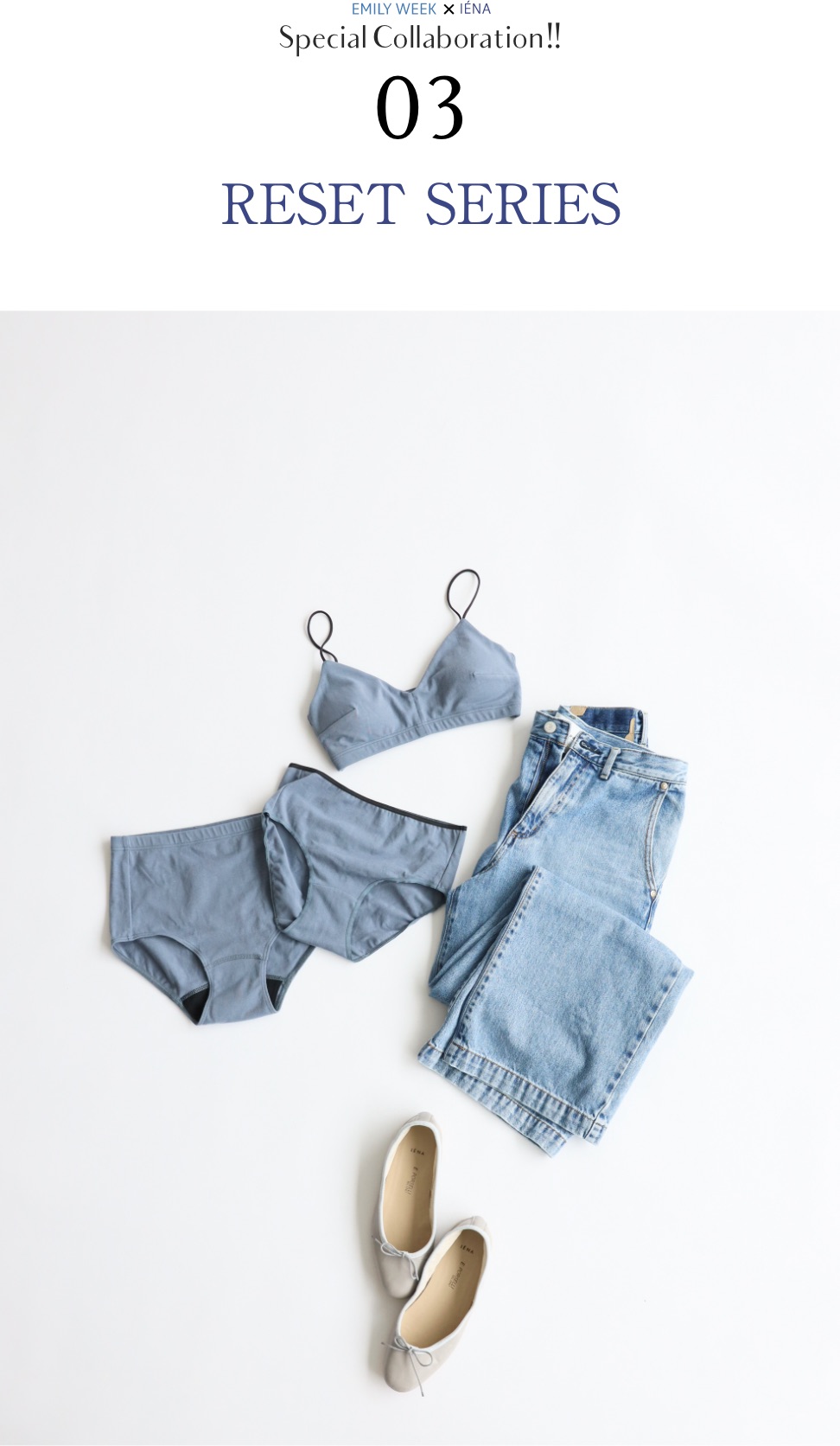 - EMILY WEEK定番の「RESET」シリーズからIENA限定カラーを。