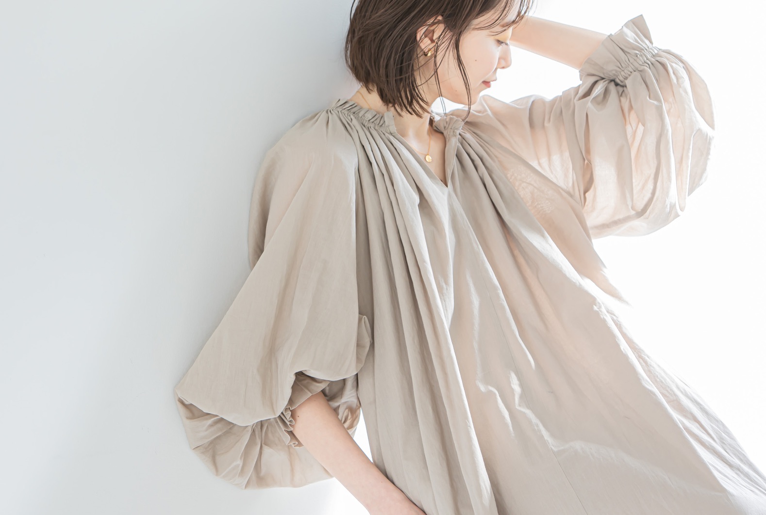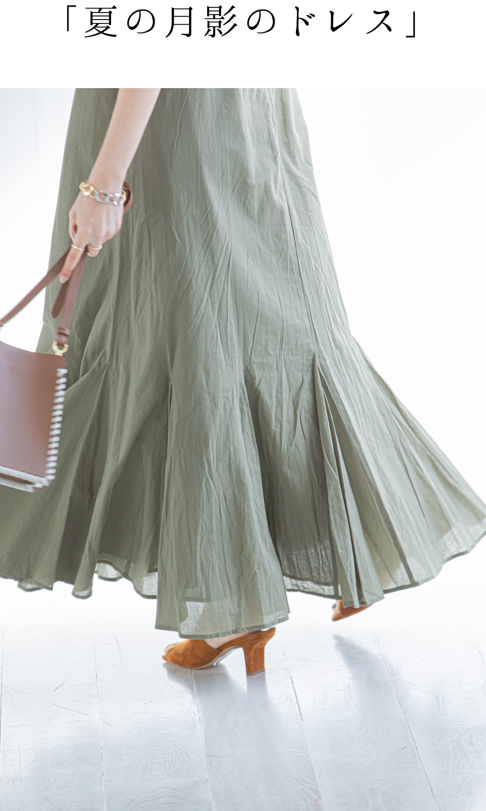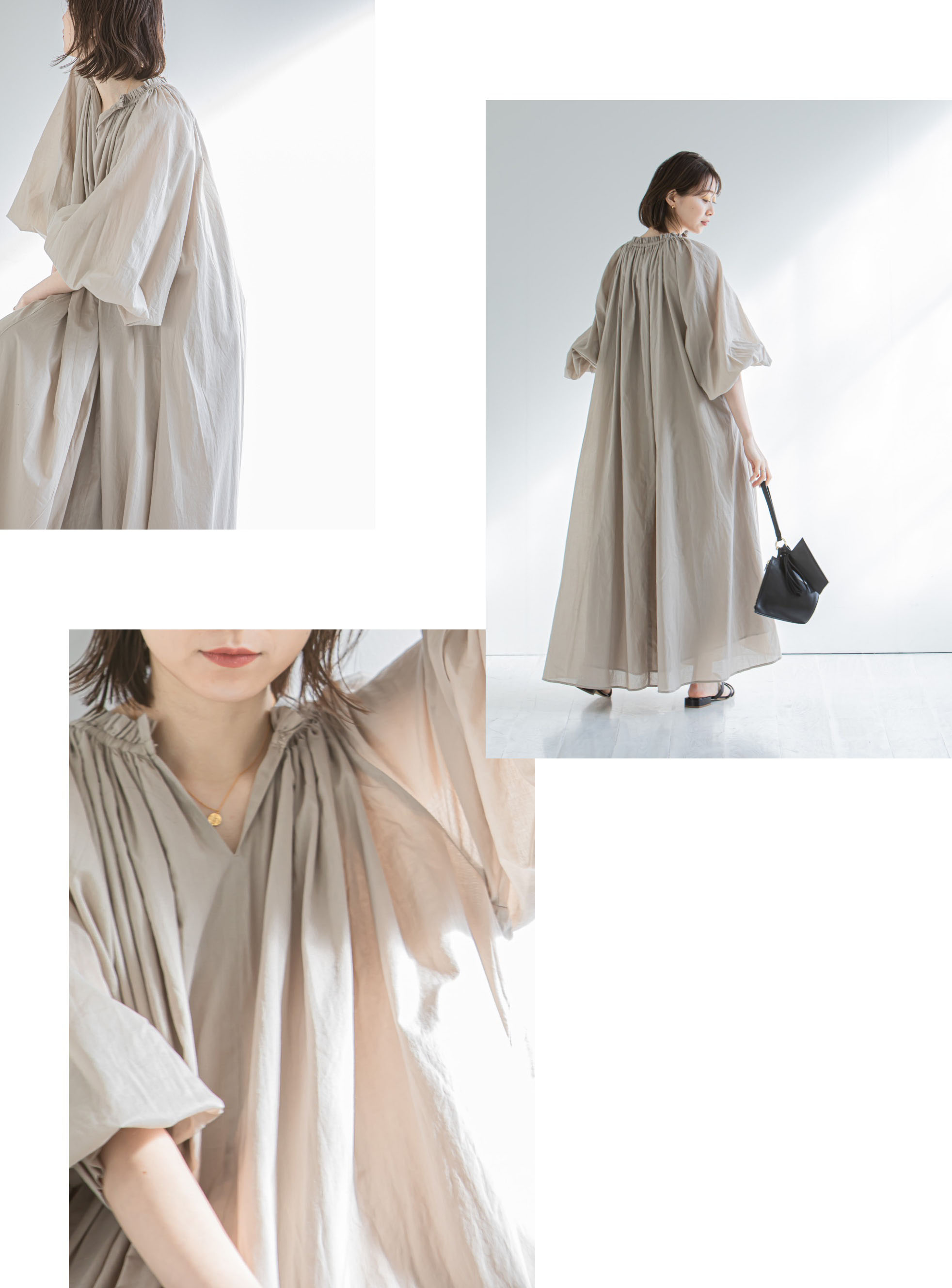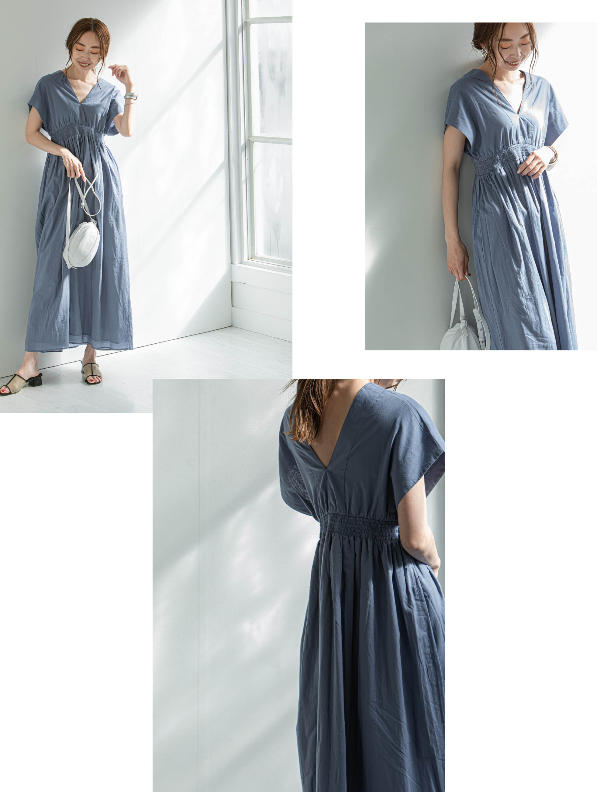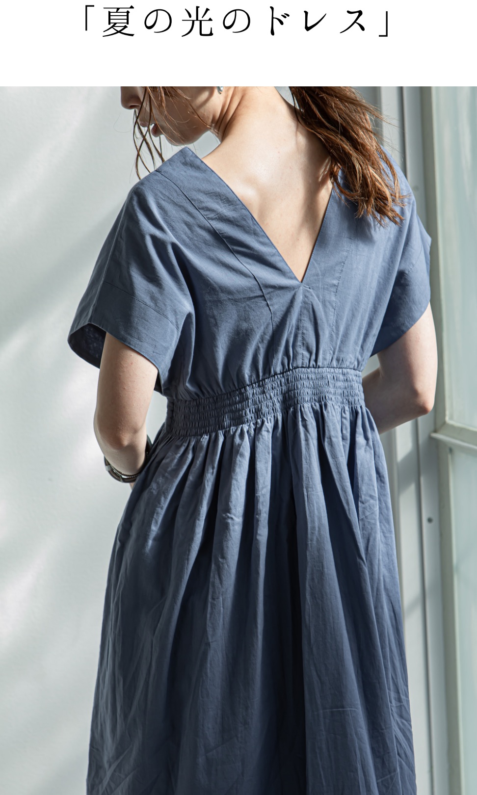 胸下のシャーリングでメリハリをつけ、スタイルアップも叶えてくれます。