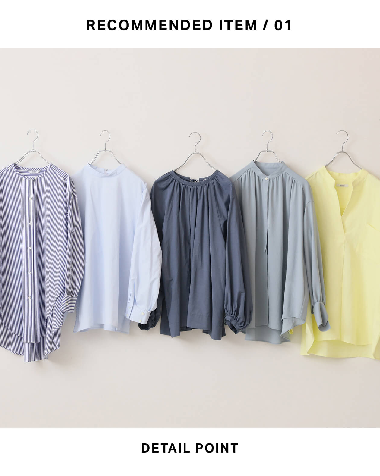 今シーズントレンドの甘めなフリルブラウス。サマータイプに合う明るめカラーなら人を選ばず着こなせそう。ベーシックなホワイトや、淡いブルーがおすすめです。襟が大きいほどにモードな印象がアップするので、辛口なボトムスやアクセを合わせるのがコツ。 - CITYSHOPBIG COLLAR SHIRT 3¥19,800(税込)