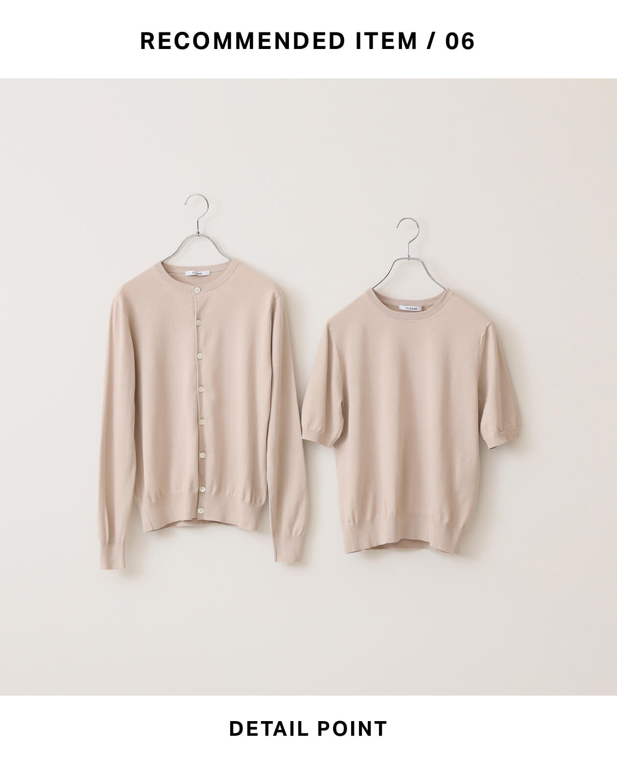 きれいめな印象のニットアンサンブルはベーシックなベージュをチョイス。黄みを抑えた赤みのあるピンクベージュの色味がサマーさんの女性らしさを引き立ててくれます。SLOANEのロングセラーである18ゲージコットンニットは、絶妙なフィットと上品な佇まいに加え、着心地の良さが病みつきに。ぜひアンサンブルで着こなして。 - VERMEIL par iena【SLOANE/スローン】18GG クルーカーディガン◆¥28,600(税込)