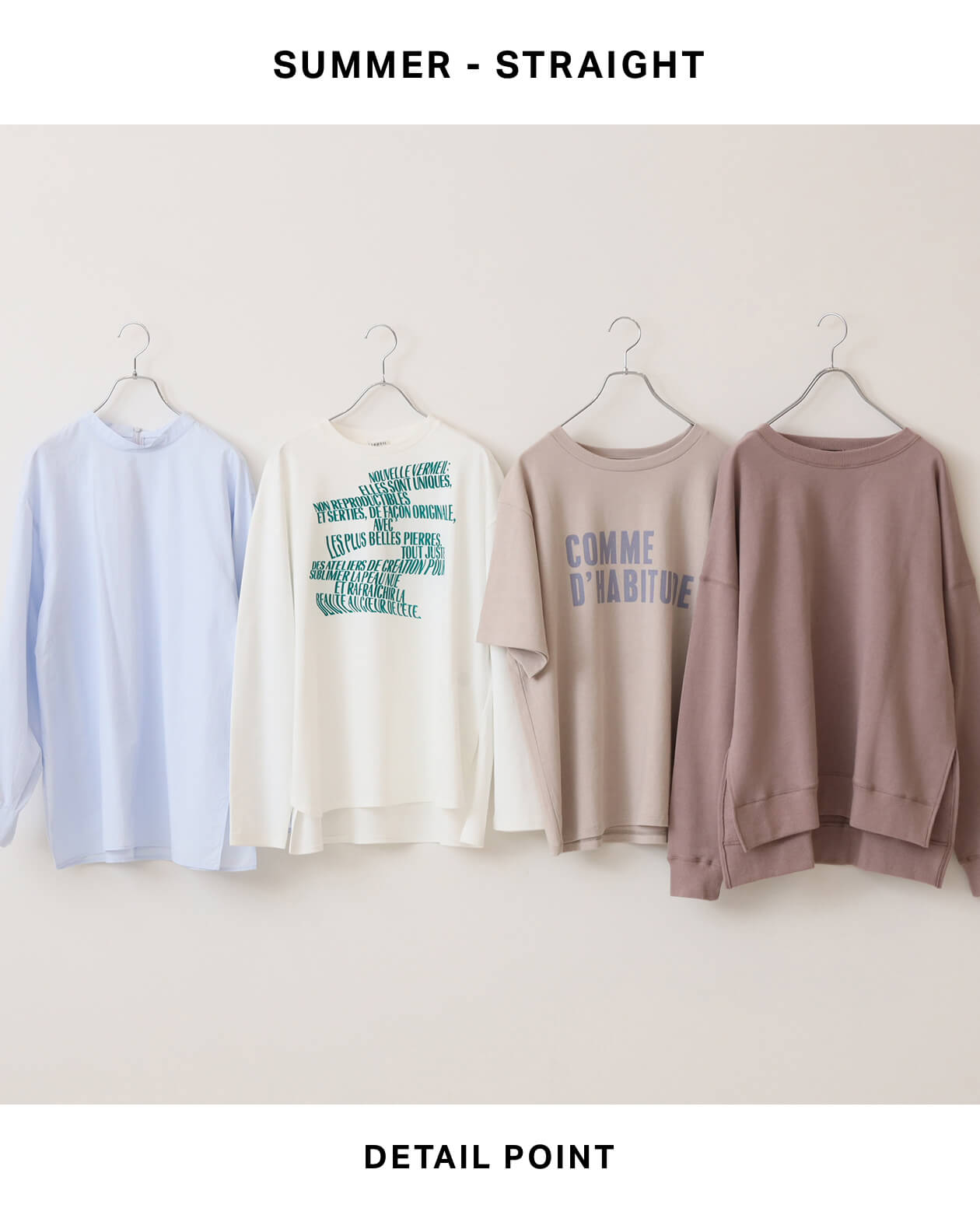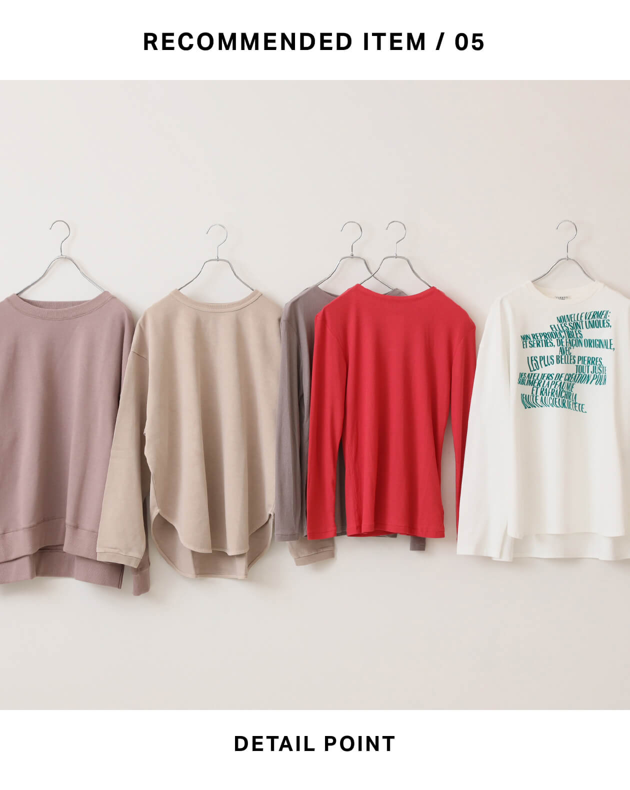 定番のシンプルなデザインのカットソーは、色で冒険するのがおすすめ。使いやすいホワイトやグレージュ系に加え、ストロベリーやモーブなど、サマーさんならではのラインナップ。ワザありのロゴTやラウンドヘムラインなど、デザインでもさりげなく主張して。 - JOURNAL STANDARD L'ESSAGE30/10 スウェットプルオーバー¥9,350(税込)