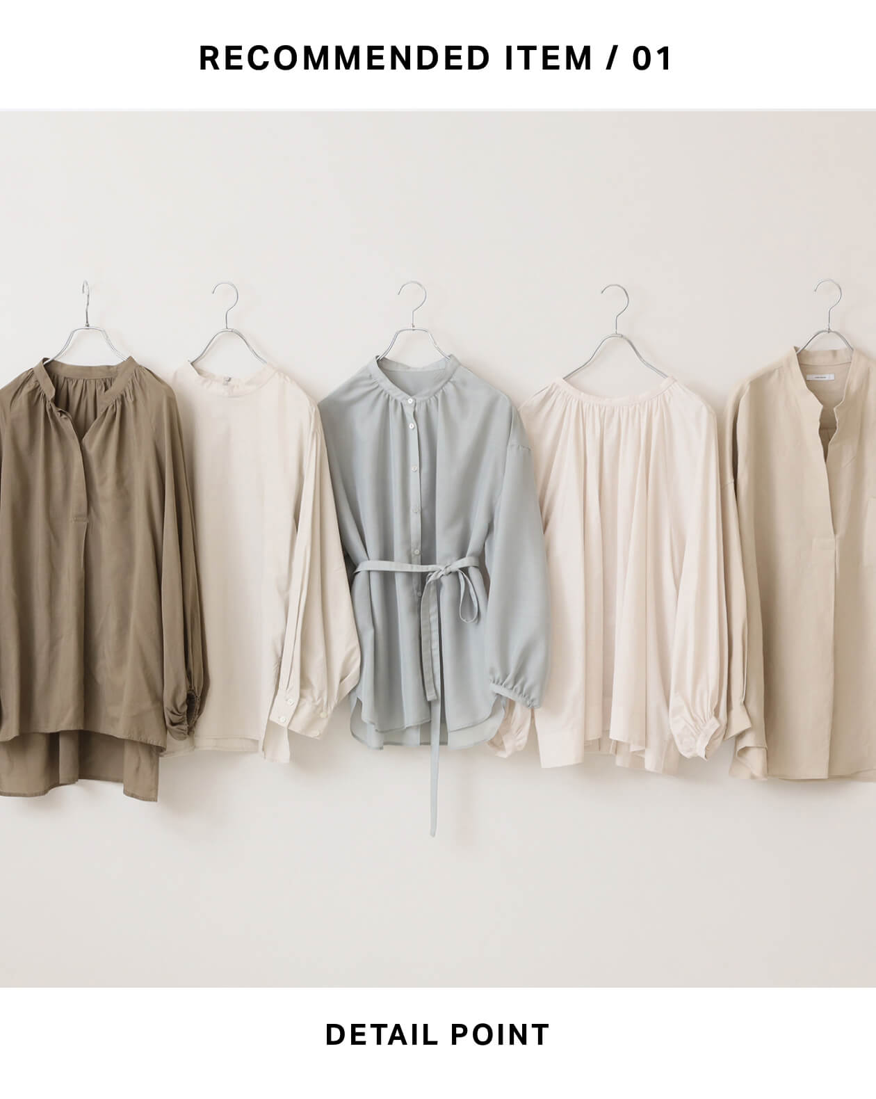 こっくりとした色が似合うオータムさんは、深みがありつつ春らしい明るめカラーがおすすめ。定番のアイボリーや、ブルー系なら青みを抑えたくすみのある色を選んでみて。オーバーサイズのスタンドカラーシャツは、リラクシーな抜け感が洗練の大人カジュアルに導いてくれます。 - JOURNAL STANDARD L'ESSAGE60ローンギャザーブラウス◆¥17,600(税込)