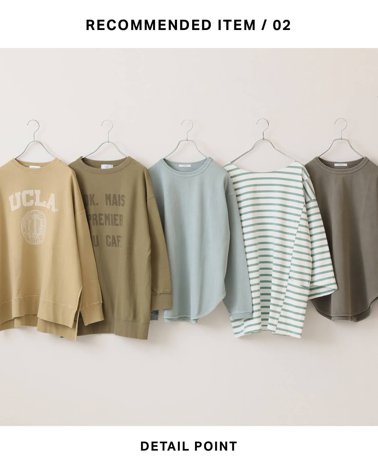 落ち着いたダスティカラーでレトロに着こなせるカットソー。ブラウンやベージュ、カーキ系ならよりヴィンテージっぽく、春らしい色味ならブルーやグリーンもおすすめです。ヒップまでさりげなくカバーしてくれるオーバーサイズのスウェットは、普段使いに最適。サイドスリットやラウンドヘムラインがこなれ感たっぷり。 - JOURNAL STANDARD relume《追加3》セイヒンゾメカレッジスリットスウェット◆¥8,800(税込)