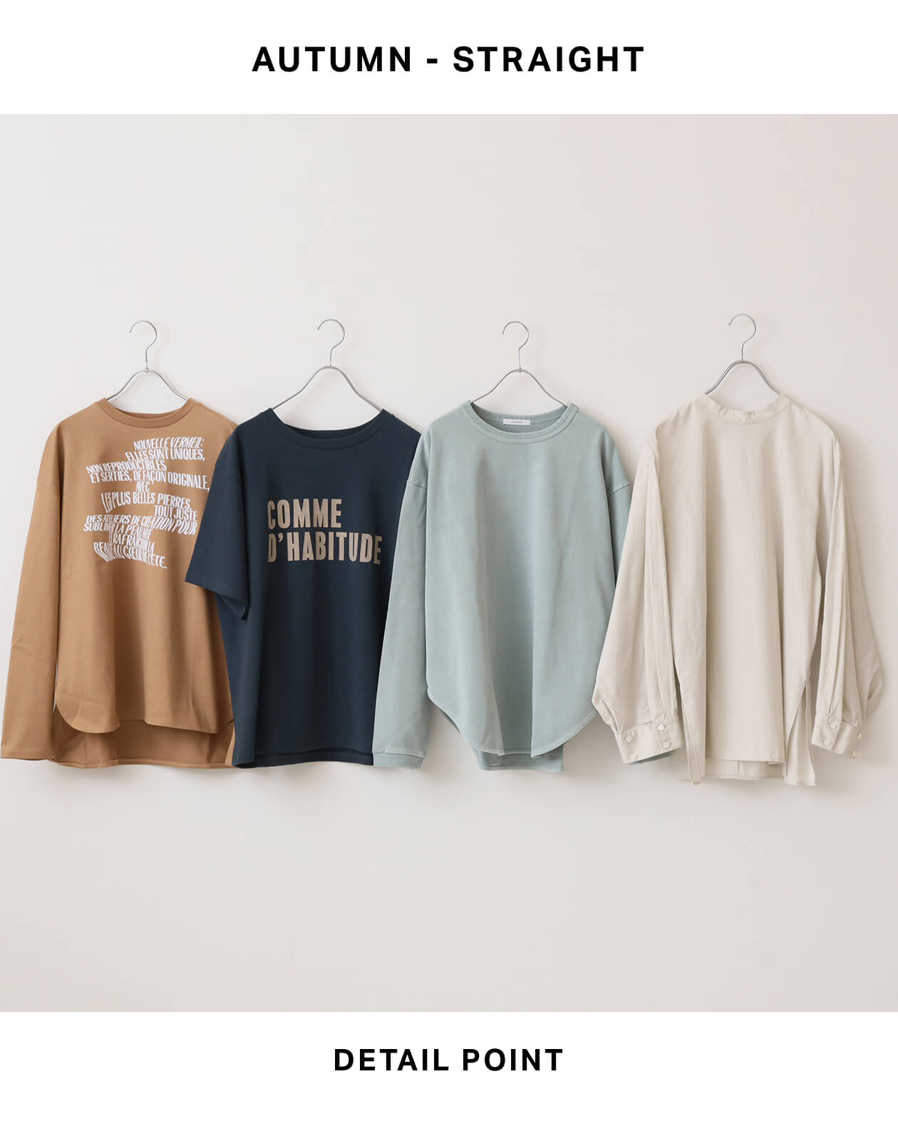 程よく厚みとハリのある素材が似合うストレートタイプ。肉厚なカットソーやかっちりしたシャツデザインがおすすめです。カジュアルコーデにはロゴアイテムで遊び心を。シンプルだけど、袖のボリュームがひとひねり効いたブロードシャツもリコメンド。 - VERMEIL par iena《追加》フロッキーフレンチロゴ ロングTシャツ◆¥13,200(税込)