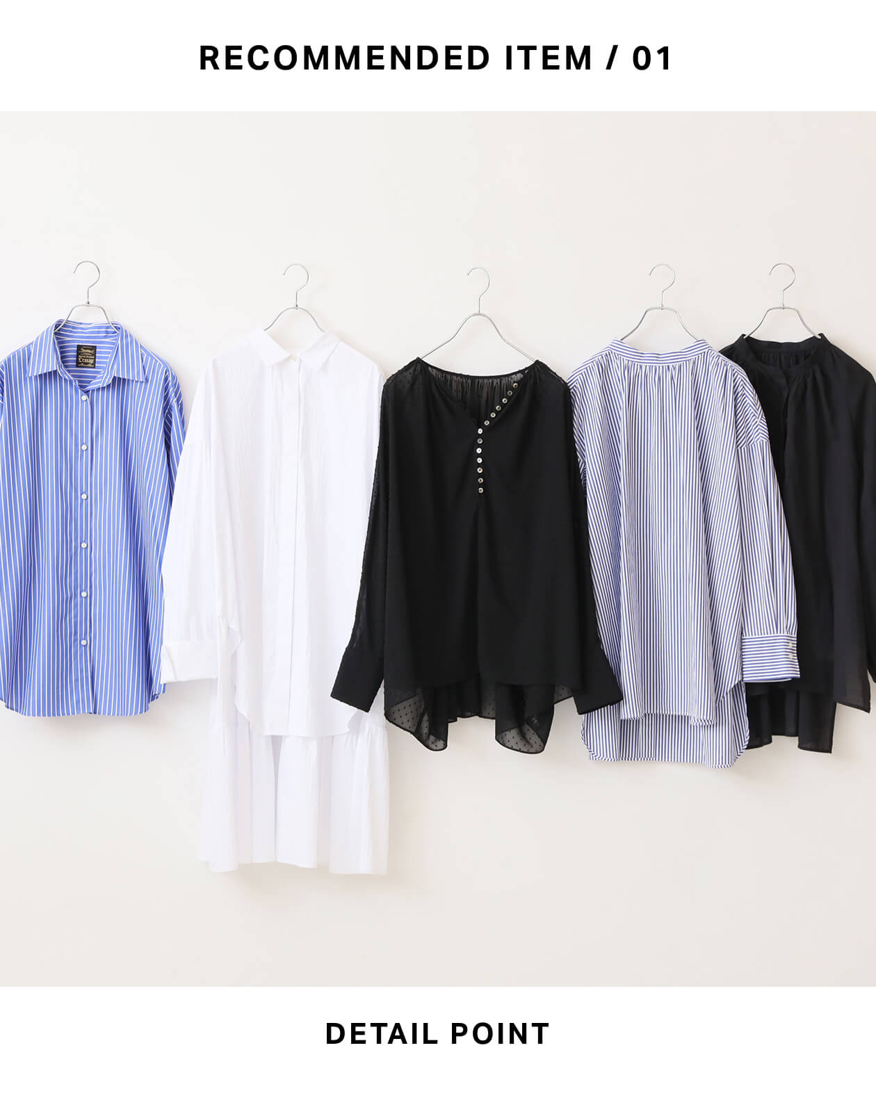 暗めのモノトーンが多くなりがちなウィンタータイプの春のおすすめは、パキッとしたホワイトや爽やかなブルー系。ネイビーもホワイトと合わせるとクリーンな印象になりおすすめです。シアーな透け感が女っぽいブラウスは、トレンド感たっぷりのテントシルエットに更新を。 - JOURNAL STANDARD L'ESSAGEタイプライターレギュラー/C シャツ¥15,400(税込)