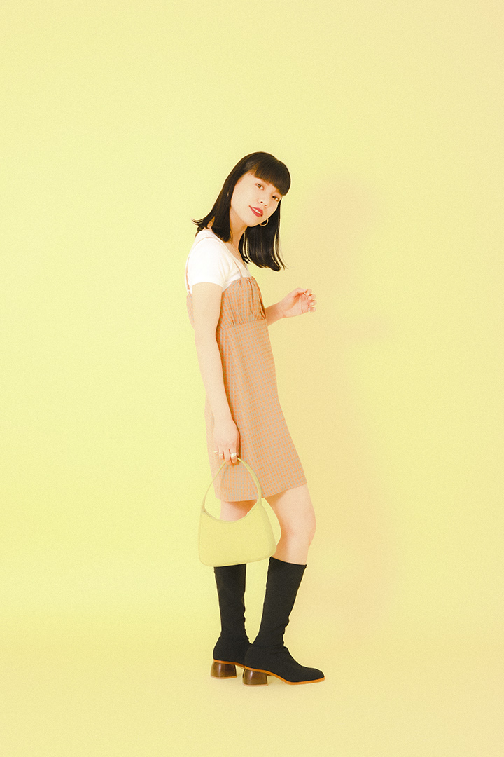 - レトロなチェック柄がポイントのキャミソールワンピース。