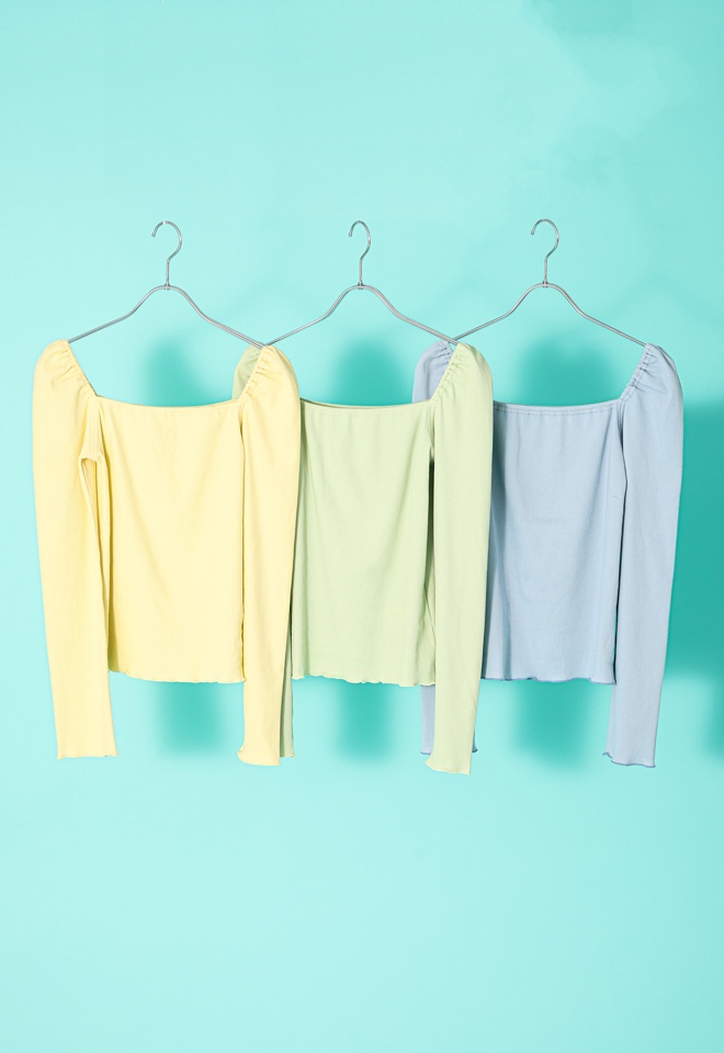 パフスリーブと裾や袖口に施したメロウ加工が程良いガーリーさを演出。