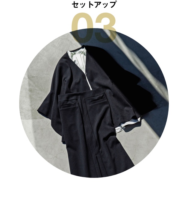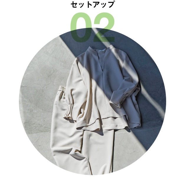 セットアップといえば、ワンツーコーデが叶う便利なアイテム。