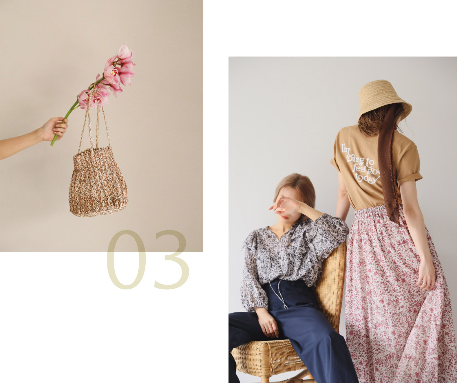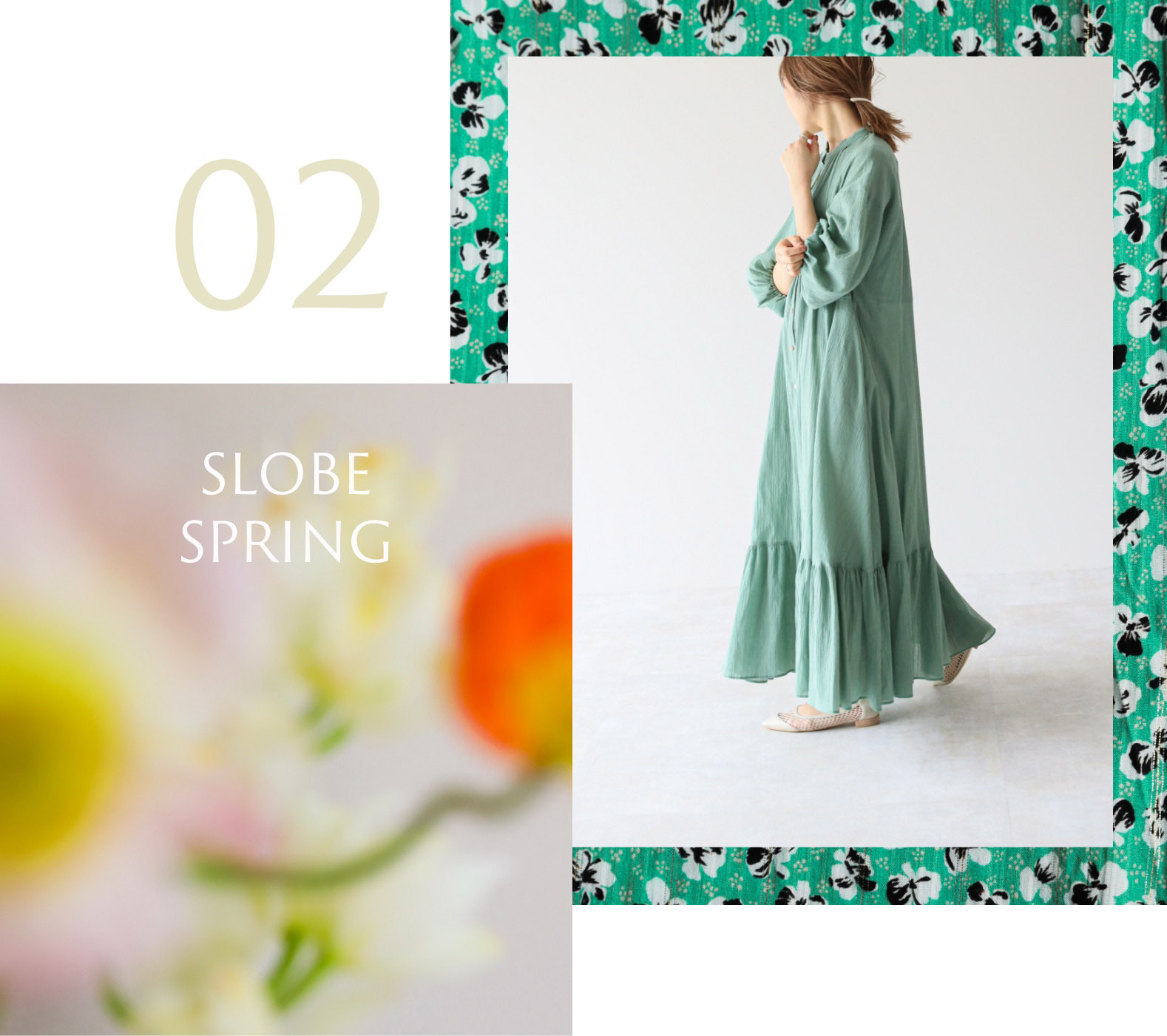 春の訪れを感じたら、いち早く身に付けたいのは 軽やかな素材、魅力的な柄、自分が素敵に見える色。 いつものスタイリングよりも少し陽気なムードを纏って 爽やかな季節を楽しみましょう。SLOBE IENA麻/ポリ テーラードジャケット◆¥18,700(税込)SLOBE IENAベーシックロングタンクトップ◆¥6,050(税込)SLOBE IENAパンジープリントキャミワンピース◆¥15,400(税込)SLOBE IENA【NICOLAS LAINAS/ニコラスライナス】フラットレザー サンダル◆¥7,590(税込)SLOBE IENAダブルフラワージョーゼットブラウス◆¥14,300(税込)SLOBE IENAアイレットレースパンツ◆¥11,000(税込)SLOBE IENA《追加2》SLOBE IENA グルカサンダル◆¥13,200(税込)SLOBE IENAウォッシャブル楊柳フレアワンピース◆¥13,200(税込)SLOBE IENA【MOHI/モヒ】メッシュポインテッドパンプス◆¥15,180(税込)SLOBE IENA【Bagmati/バグマティ】 METALIC LUREX ハンドバッグ◆¥7,590(税込)SLOBE IENA更紗フラワーフリルブラウス◆¥13,200(税込)SLOBE IENAベルテッドタックパンツ◆¥12,100(税込)SLOBE IENA【La Maison de Lyllis 】CLOCHEハット◆¥15,400(税込)SLOBE IENA【MIXTA/ミクスタ】SLOBE別注プリントTEE◆¥7,480(税込)SLOBE IENA更紗フラワーギャザースカート◆¥16,500(税込)SLOBE IENAフレンチスリーブプルオーバー◆¥7,700(税込)SLOBE IENA【BRIE LEON/ブリー・レオン】 ビーズネックレス◆¥15,950(税込)SLOBE IENA【BEN AMUN/ベン アムン】コインネックレス◆¥10,780(税込)SLOBE IENA【O’NEIL OF DUBLIN/オニール・オブ・ダブリン】 Aラインバックルスカート¥4,840(税込) 80%OFFSLOBE IENAストレッチコットン アイレットパフスリーブプルオーバー◆¥9,900(税込)SLOBE IENAリネンラップスカート◆¥10,450(税込)SLOBE IENA【AIM/エイム】SLOBE別注 s gateメガネ¥14,850(税込)SLOBE IENA《追加2》SLOBE IENA グルカサンダル◆¥13,200(税込)SLOBE IENA【Soierie/ソワリー】 NEO HOOP ネックレス◆¥14,300(税込)SLOBE IENA【Soierie/ソワリー】 NEO HOOP EARCUFFRING◆¥11,550(税込)SLOBE IENA【Soierie/ソワリー】 ART SCREW イヤリング¥11,550(税込)SLOBE IENA【La Maison de Lyllis/ラメゾンドリリス】 HAMPTON◆¥11,000(税込)SLOBE IENA【Karl Blossfeldt/カールブロスフェルト】SLOBE別注 プリントロンTEE◆¥6,930(税込)SLOBE IENAチェックニットキャミワンピース◆¥14,300(税込)