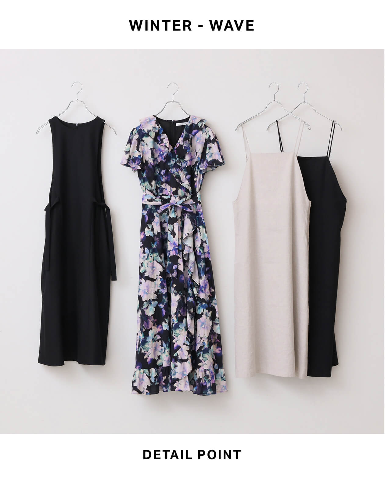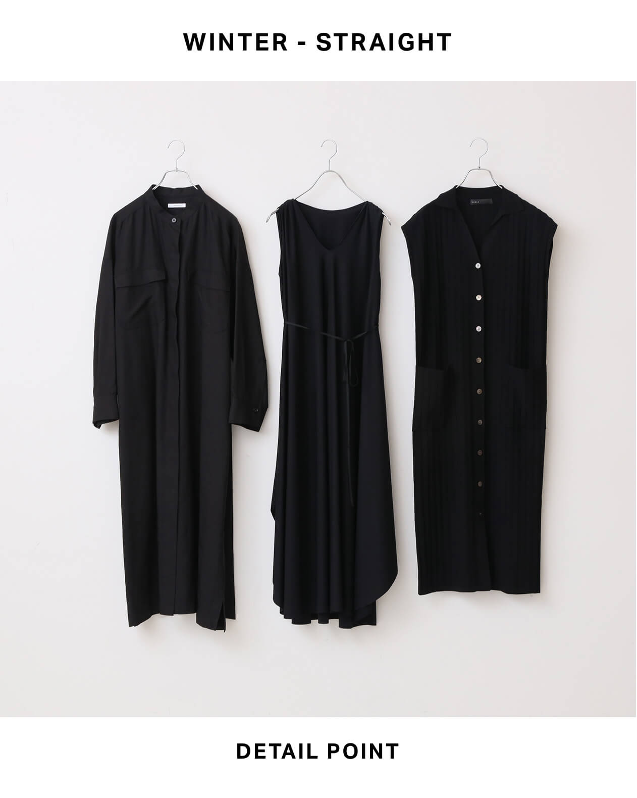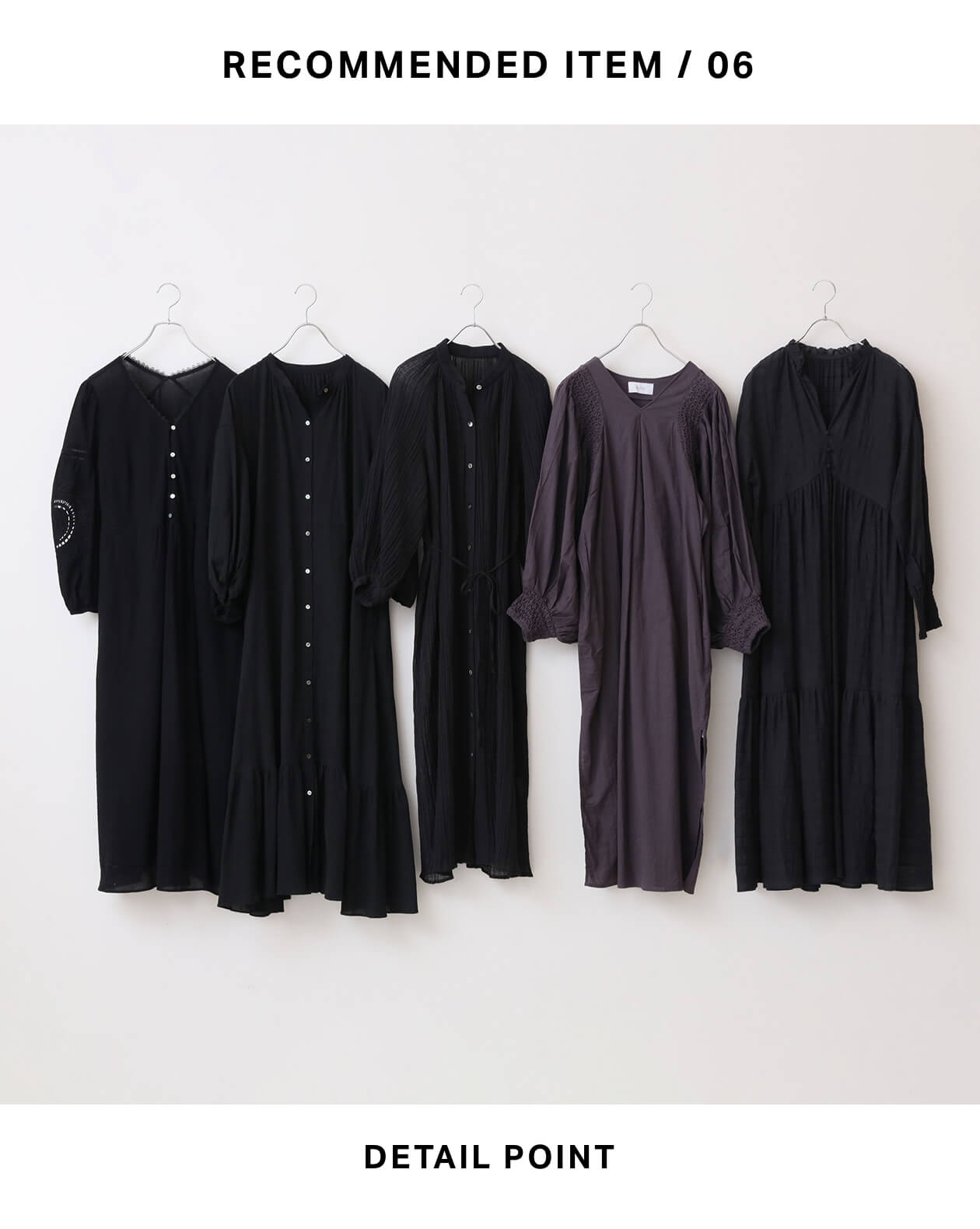 楊柳や麻素材のワンピースは軽くてふんわり&リラックスしていながらも、Vネックやスリットのメリハリでこなれ感たっぷり。クラフト感溢れるアイテムはシックなブラックカラーを選べば、甘辛バランスが取りやすくて◎オールブラックでも色に負けないのがウィンタータイプの特徴です。特に今季はブラックワンピのバリエーションが豊富。ニュアンスのあるグレイッシュなブラックはレディに着こなして。 - SLOBE IENAエンブロイダリーVネックワンピース◆¥16,500(税込)