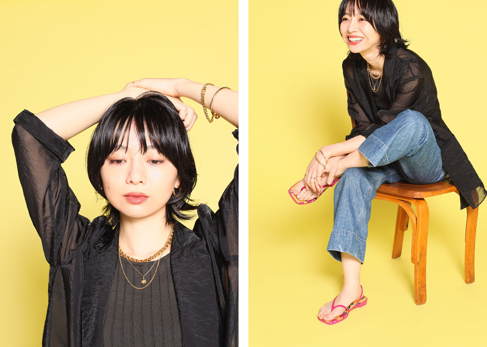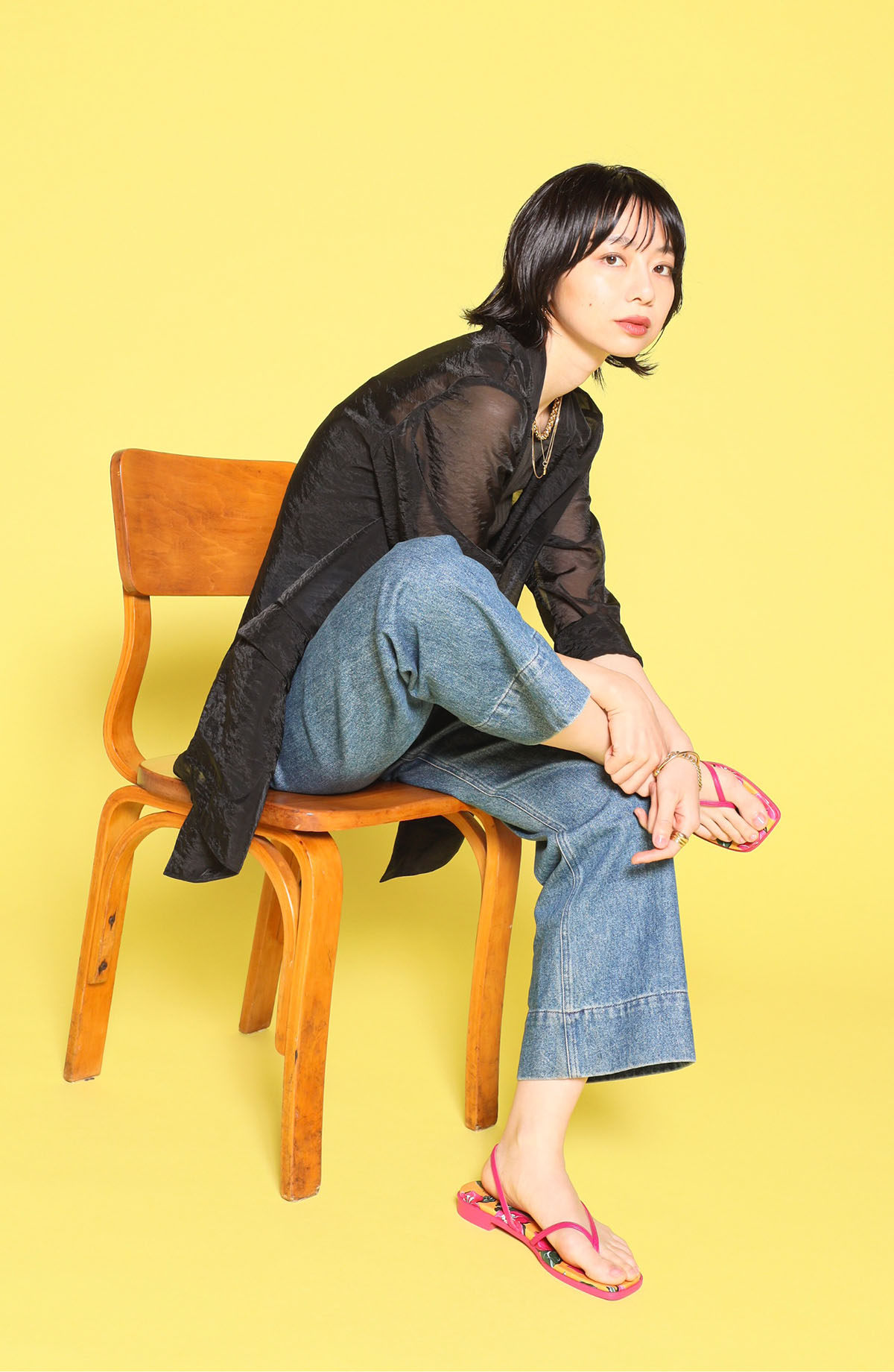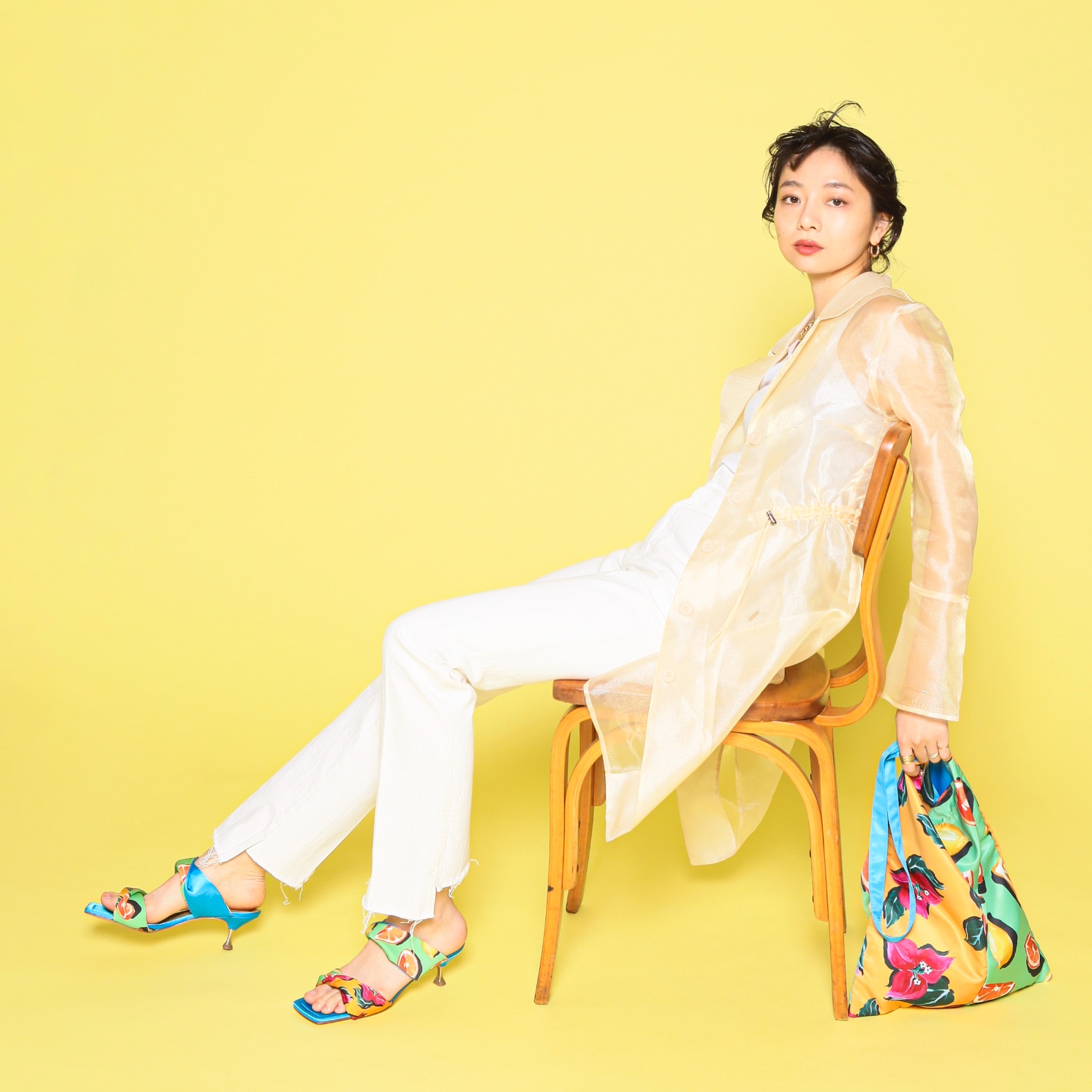 はい、シューズは今回が初めてです。実は、以前からやってみたいと思っていたアイテムだったのでとてもうれしいです。シューズって、思い切っていつもと違うチャレンジをしやすいアイテムだと思っていて。例えば私は普段、ピンクの服はあまり着ないのですが、シューズだと抵抗なく取り入れられたり。今日もピンクを履きましたが、占める面積が小さくなるサンダルであれば尚更遊びの幅も広がりますよね。