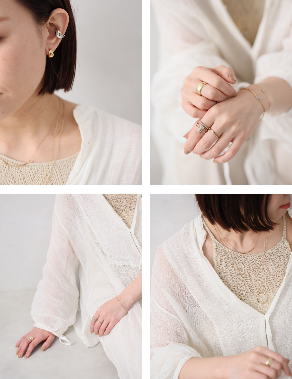 シンプルなデザインだから、たくさんレイヤードするのも楽しい。