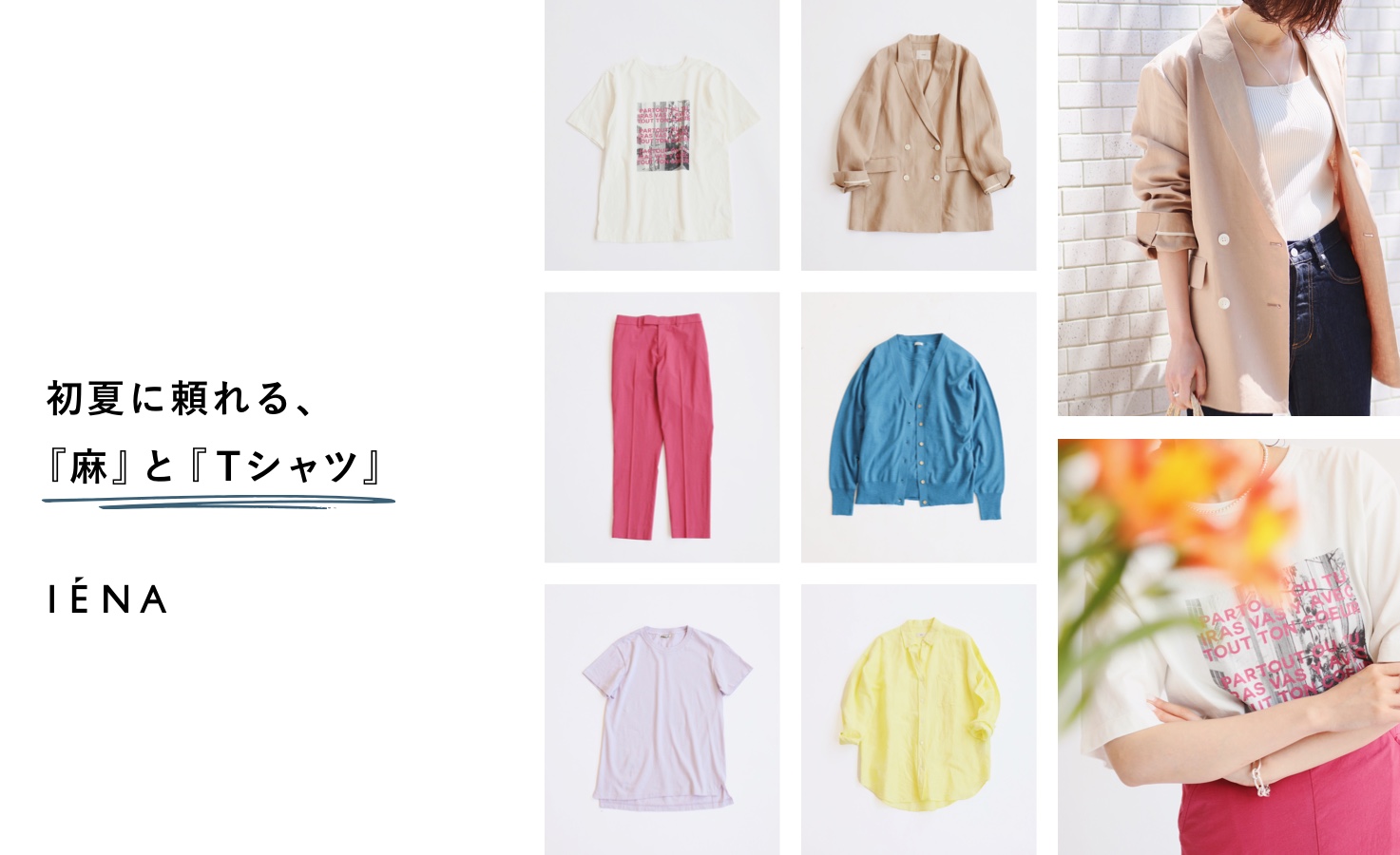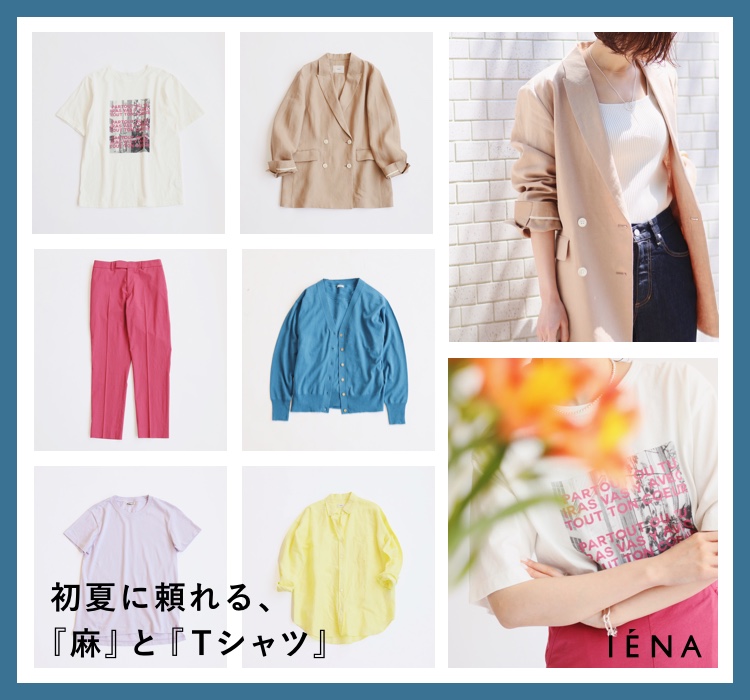 麻アイテムやTシャツ。