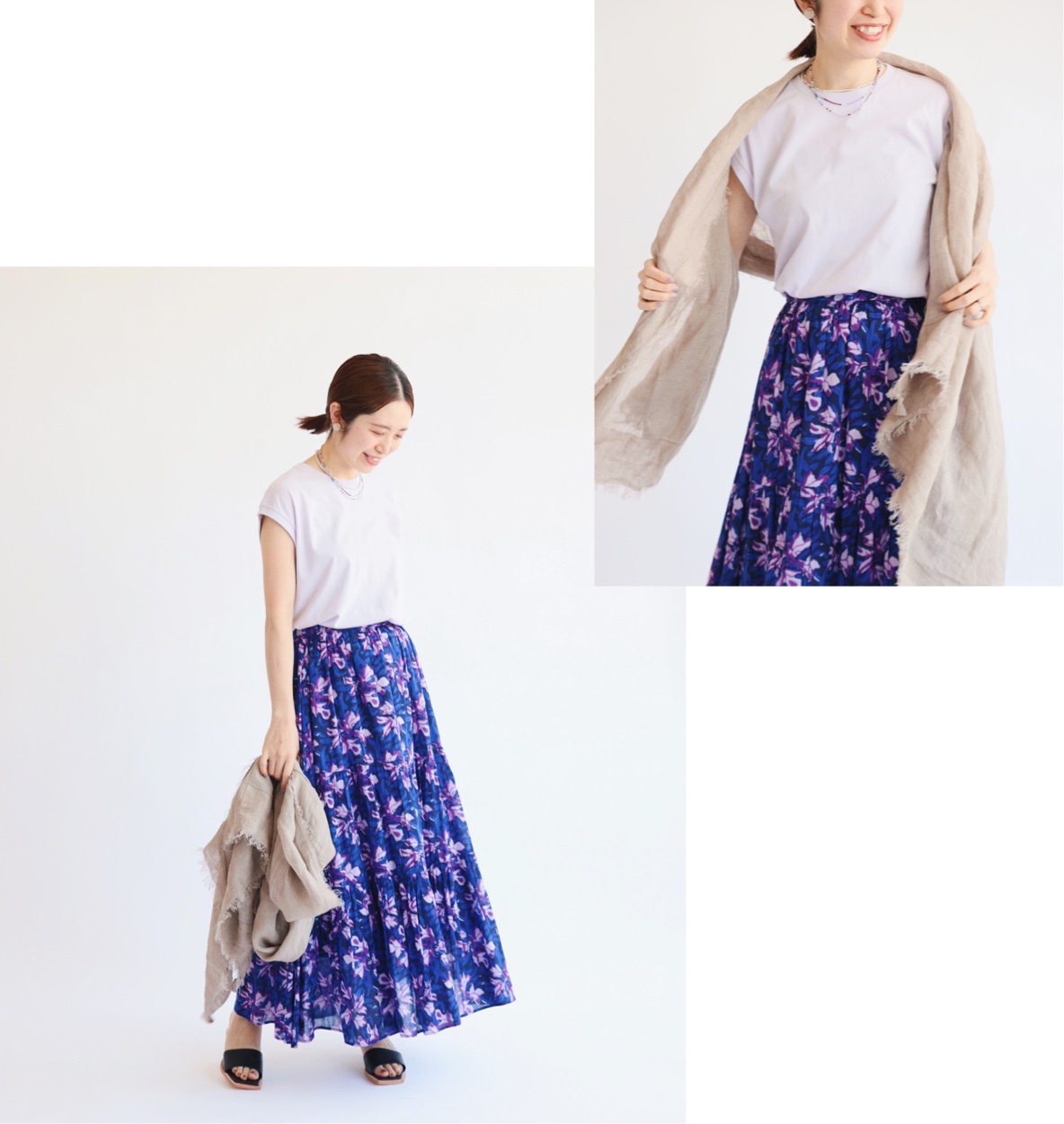 華やかなリゾートスカートを合わせて