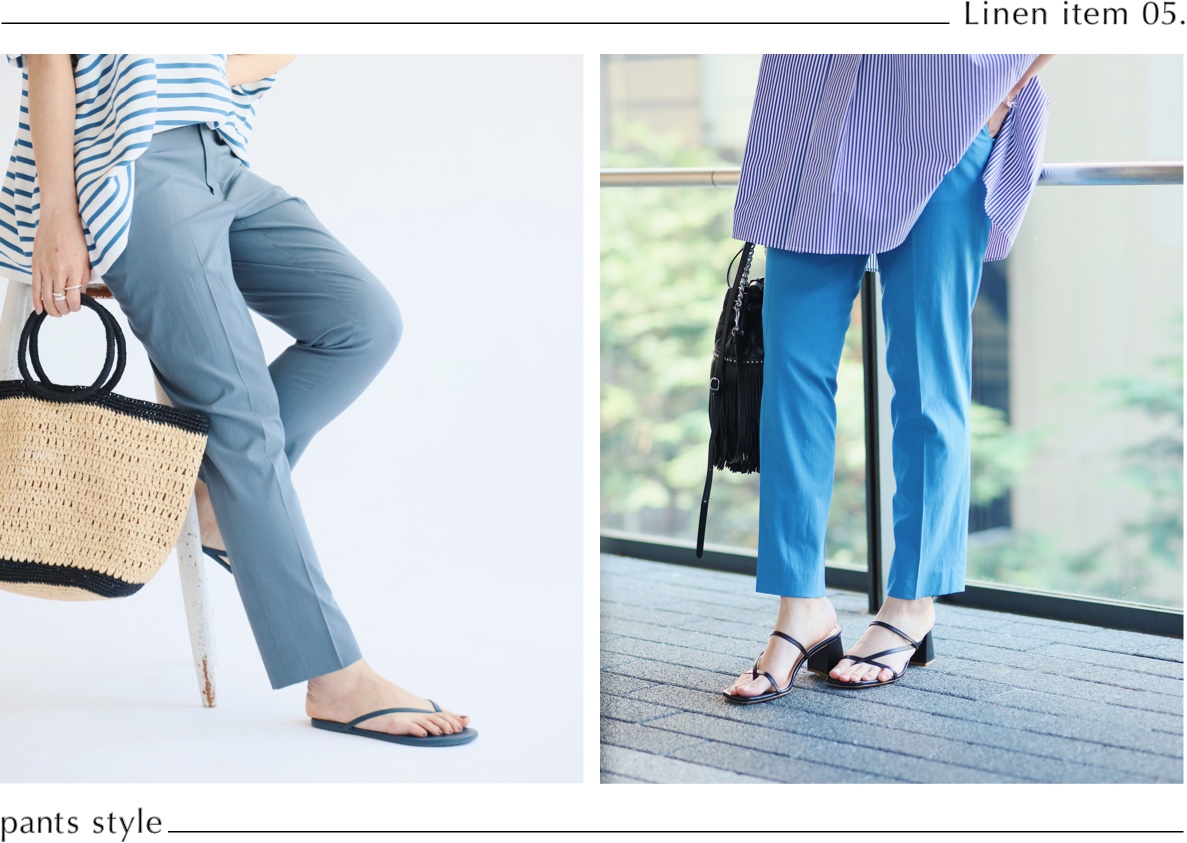 リネン混のストレッチが効いた素材は