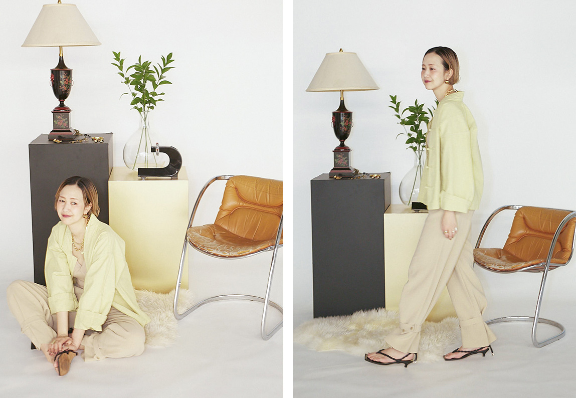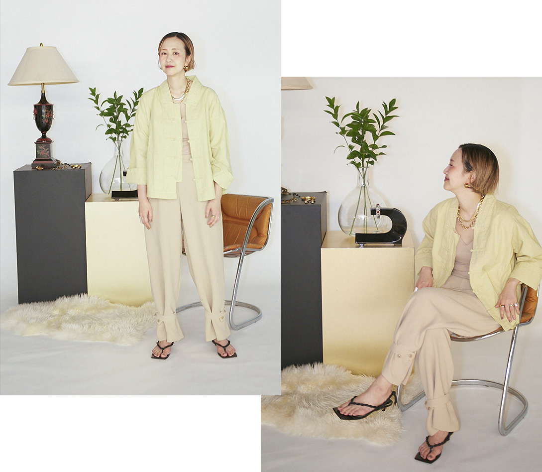 リラックス溢れるヌードカラーで、心地よく、フレッシュに。心の羽まで伸ばしましょ。- CITYSHOP【鄭惠中 x FUJIN TREE x CITYSHOP】CHINA JACKET:シャツジャケット¥15,400(税込)