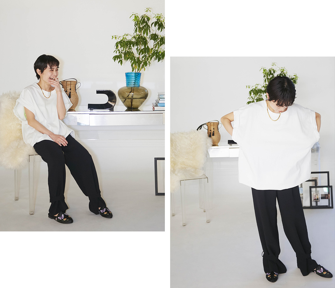 袖をたくし上げればノースリーブに気分をチェンジ。- CITYSHOPDOZUME BROWSING Tシャツ¥8,800(税込)