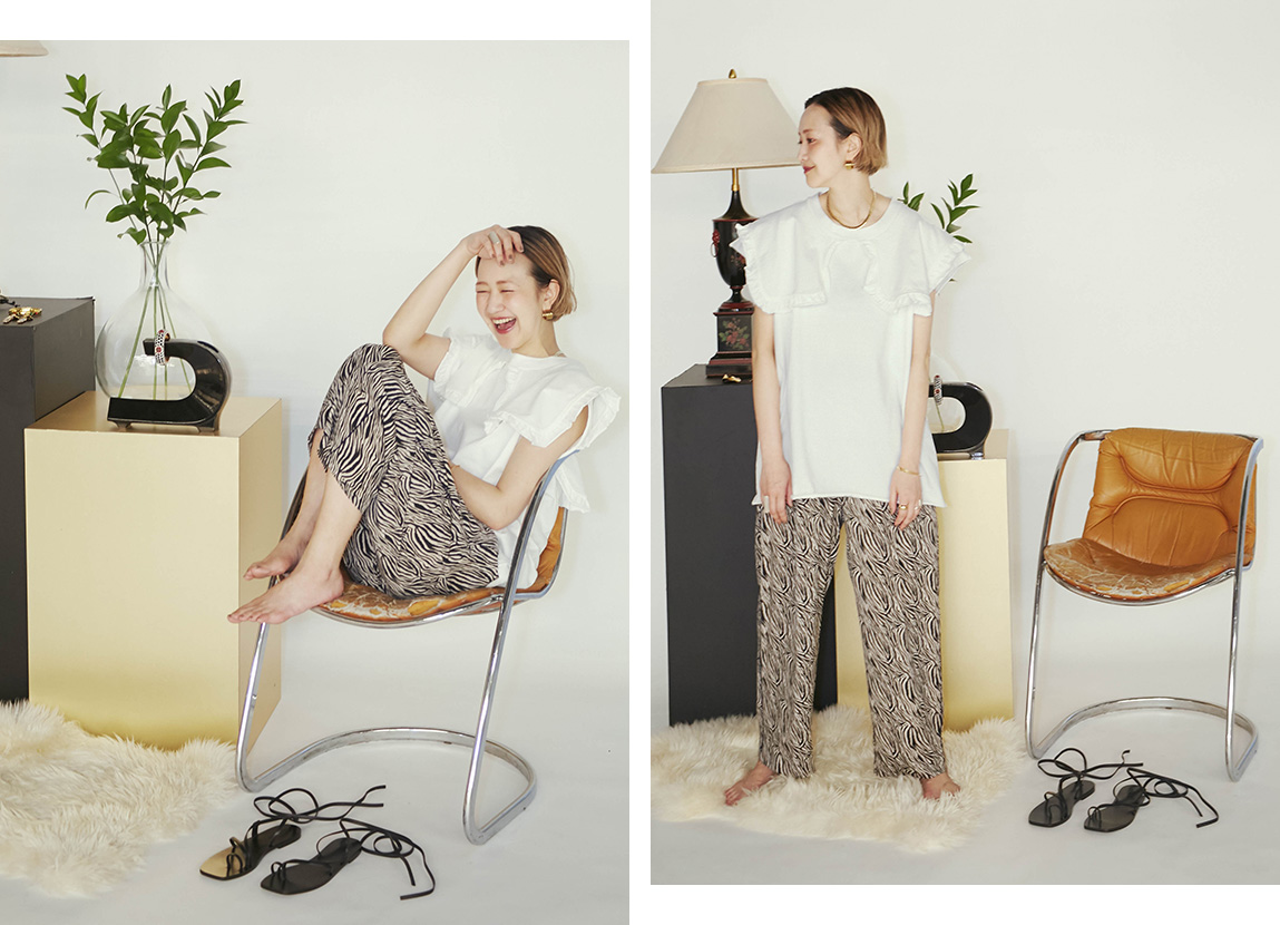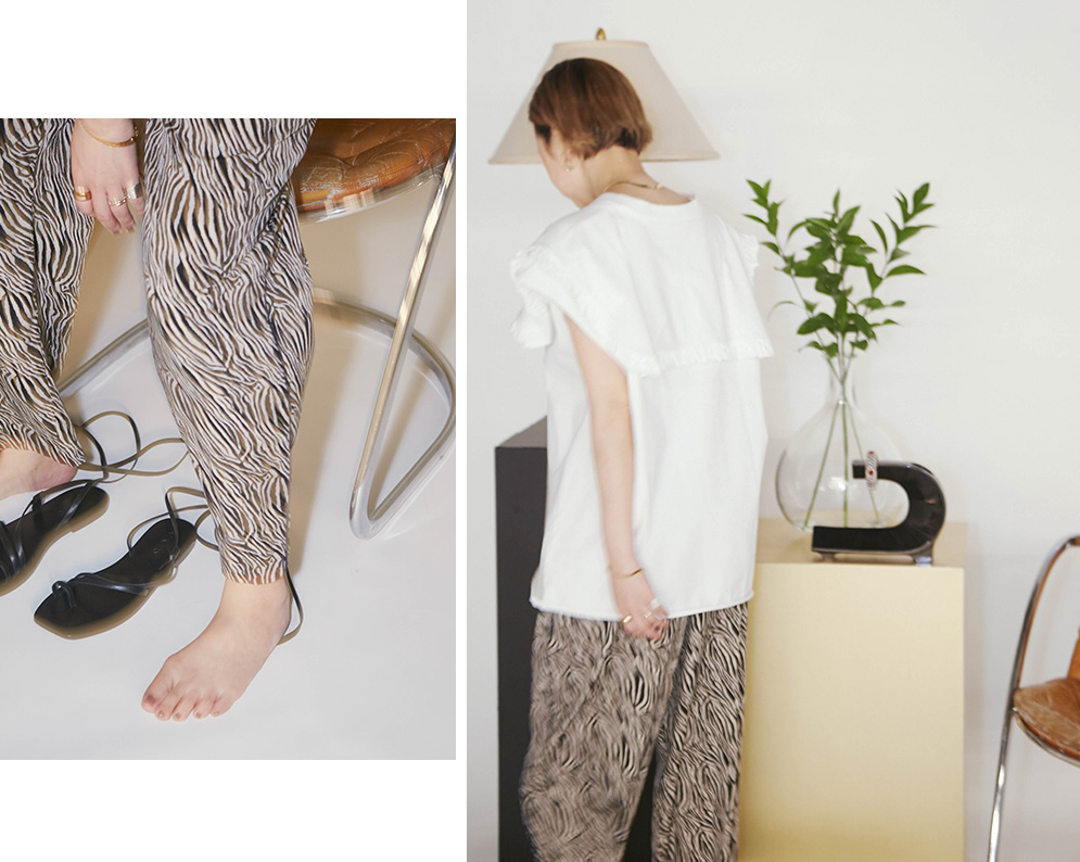 大人っぽい細やかなゼブラプリントパンツは、とろみあるしなやか素材で心ほどける抜群の着心地。