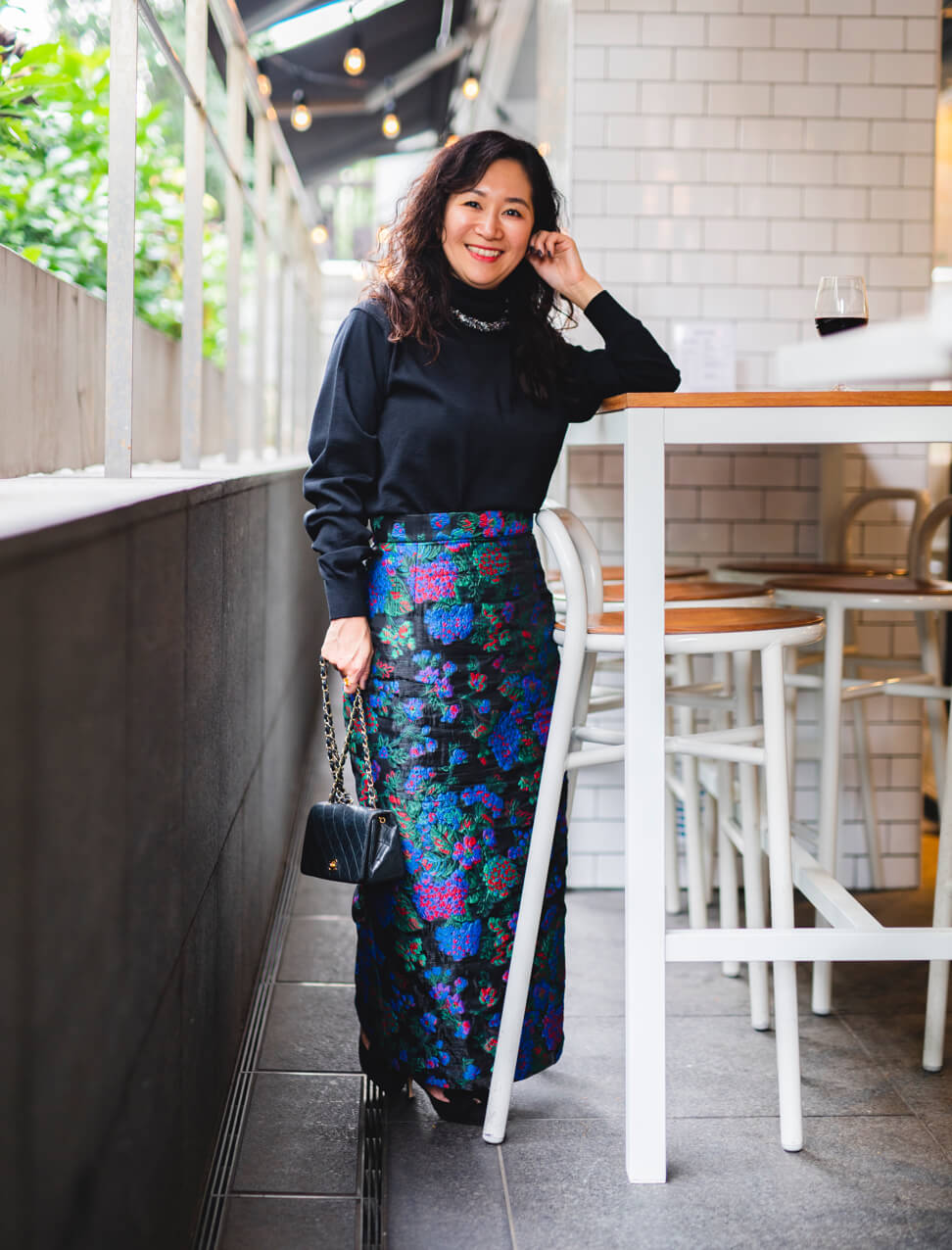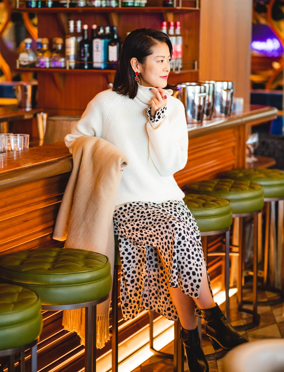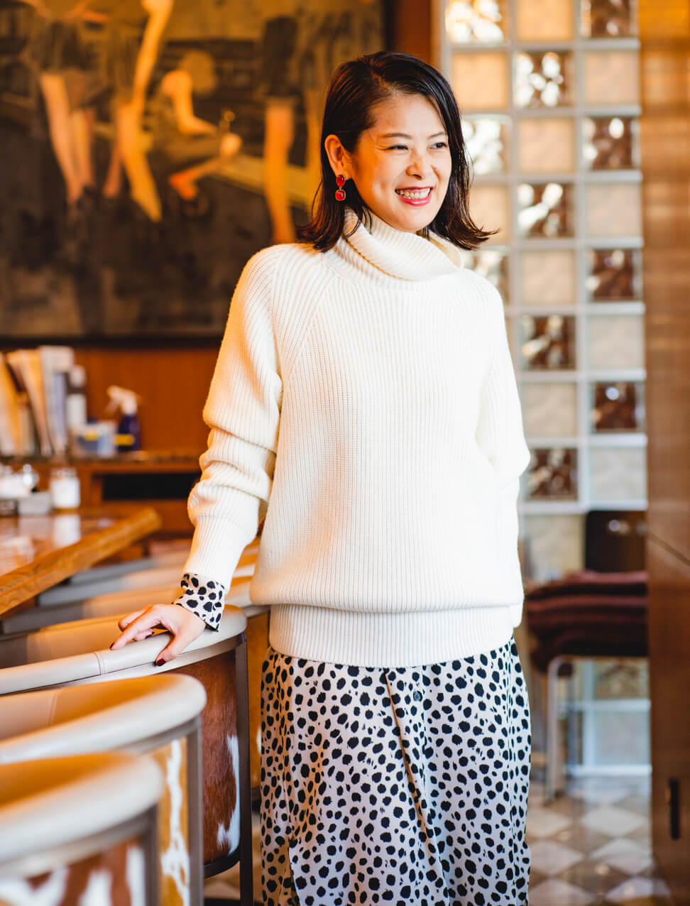 - トレンドに流されずいつも寄り添ってくれる、シンプルなタートルネックは滑らかな肌触りの上質なものを選んで。大人の女性こそ着こなせる、ムードのあるジャカードスカートをそっと引き立てます。