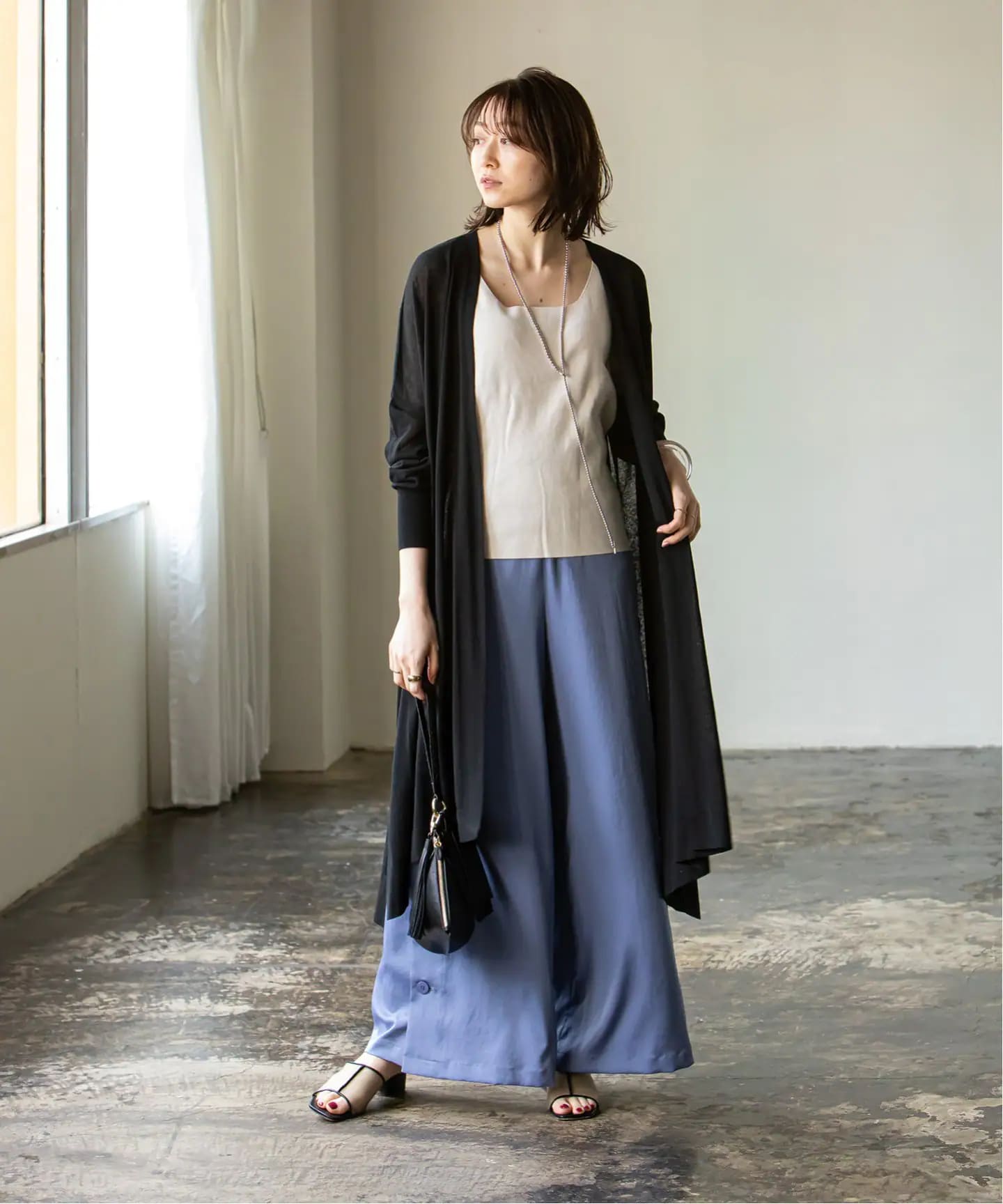 着流しカーディガンをさらりとまとって