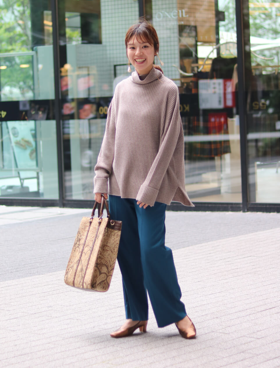 - 丸みのある優しいシルエットのニットと、ストレートパンツのバランスが絶妙。タッセルローファーもベージュならぐっと優しい印象に。