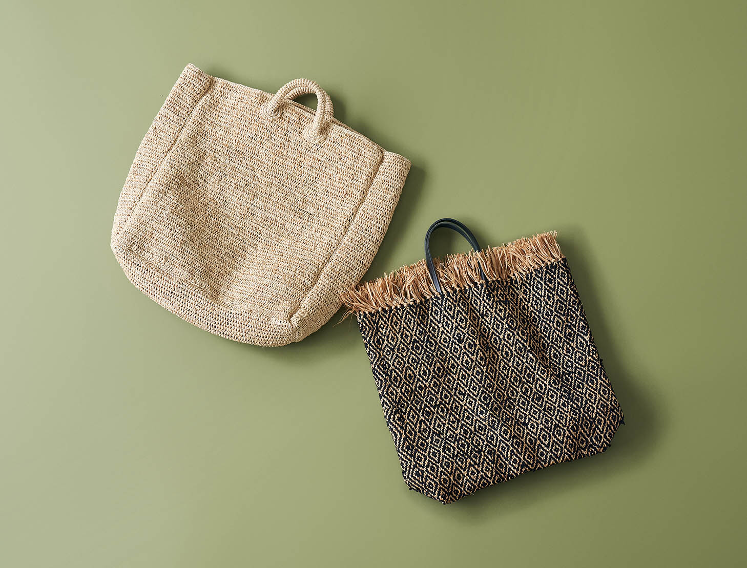 マダカスカルの熟練の職人と共に細部までこだわり抜いたBAG。マダガスカルラフィアは美しい艶と優しい肌触りが特徴で、とても軽い素材であるため、日本でも高級素材として人気。コーディネートのポイントになる大きめのトートと細部までひとつひとつ作り上げたオリジナルBAGの2型展開でご用意。