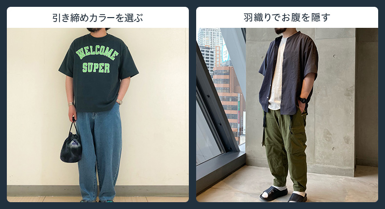 お腹周りが気になる場合、「引き締めカラーを選ぶ」「羽織りでお腹を隠す」のがコツ。