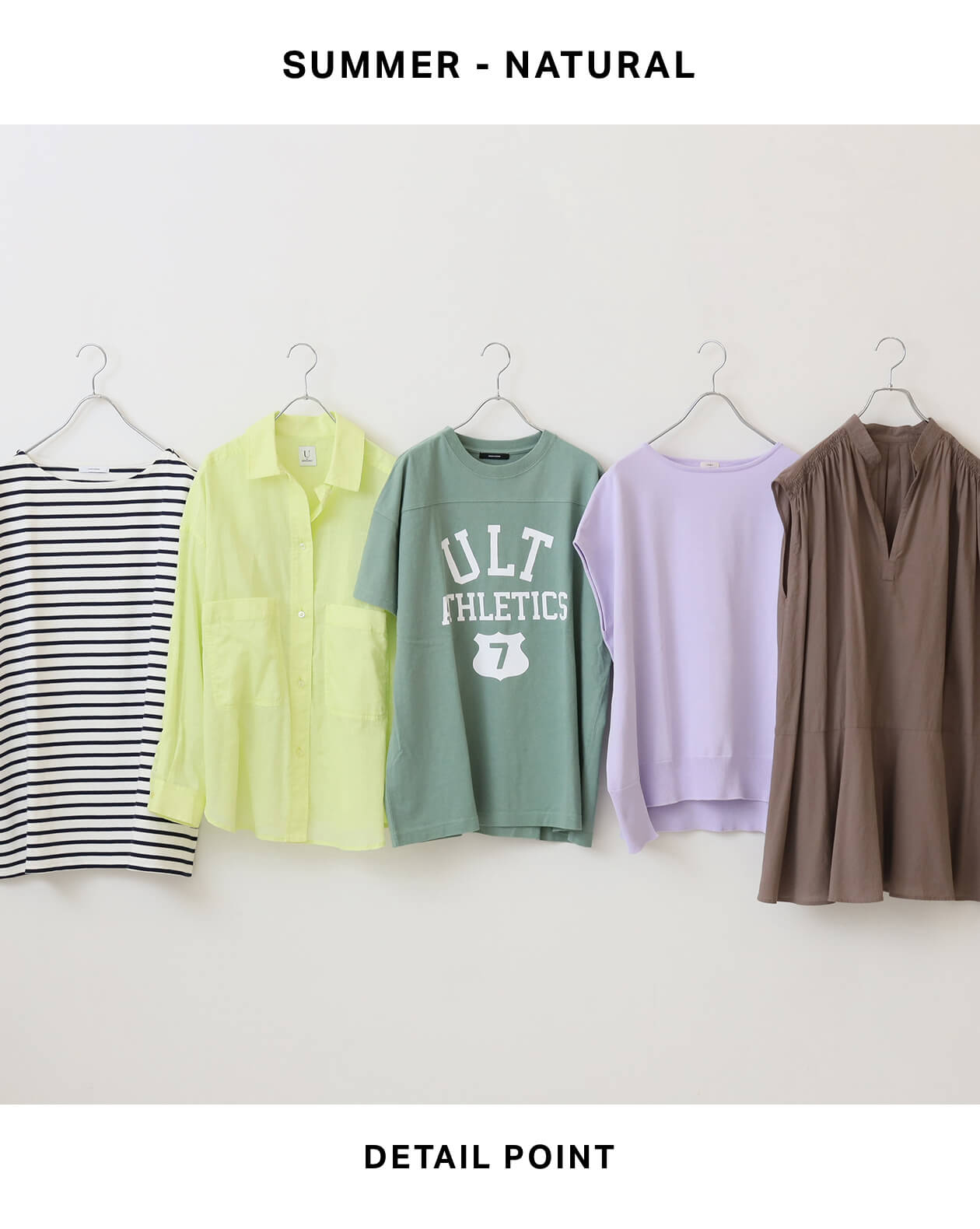 - アイテムがシンプルになりがちな夏こそ、色選びにこだわりたい。ピンクは青みのカラーを選べば、肌なじみも良く、デニムとの相性も抜群です。ノースリーブやフレンチスリーブのシャツなら着やすいながらも抜け感のあるコーデに。さりげなく二の腕をカバーしてくれる、こなれたオーバーサイズシルエットなのも魅力。