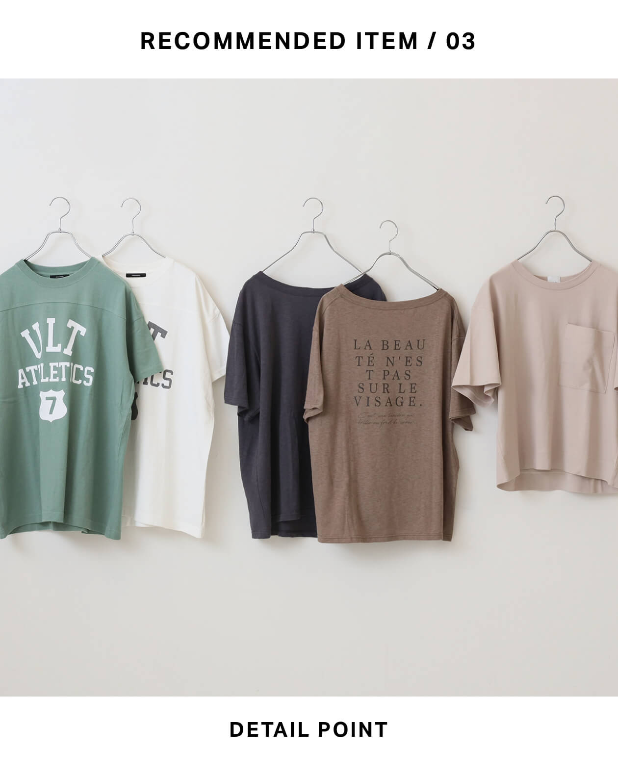 - ニュアンスカラーが豊富なサマータイプこそ、Tシャツは色で差をつけて。ダスティなブラウンやグリーンはくすみがありつつ青みもあって、1枚でこなれ感たっぷり。キャッチーなカレッジロゴが目を引くデザインで、夏のワンツーコーデに遊び心をプラス。